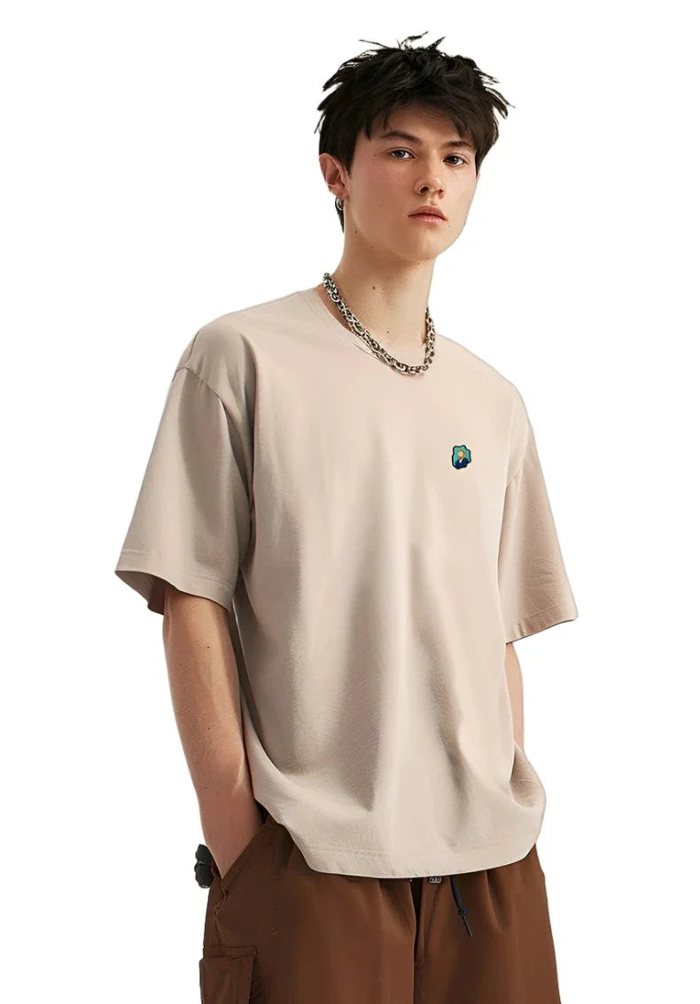 Introducing Vonvex's Vintage Embroidered Drop Shoulder T-Shirt. a blend of cotton and polyester for comfort. Featuring an O-neck collar and adorned with cartoon embroidery. it exudes a retro charm. Crafted from broadcloth fabric. it offers durability and style for everyday wear.