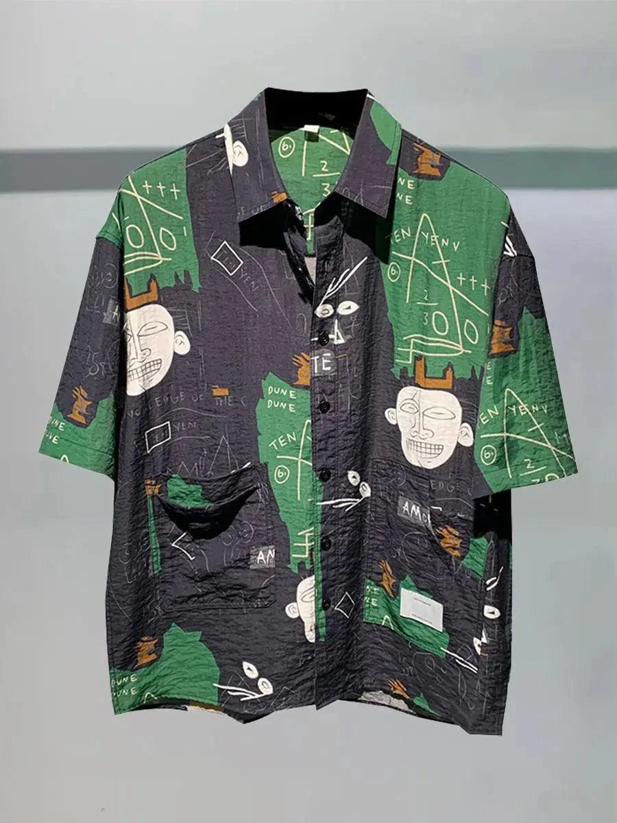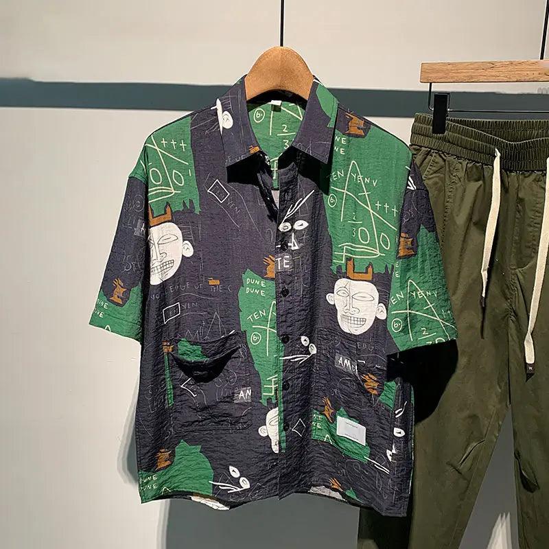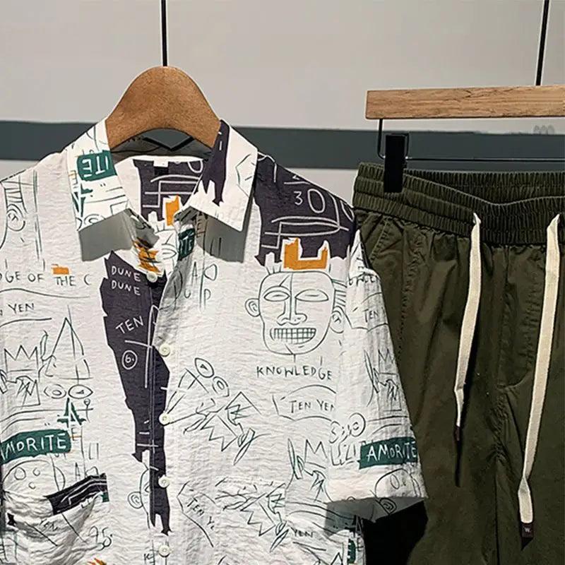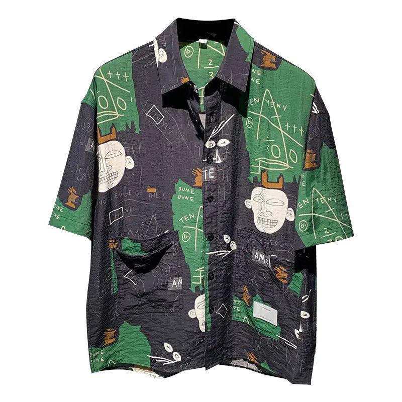 Introducing Vonvex's Vintage Graffiti Short-Sleeved Shirt. Crafted from a blend of cotton and bamboo fiber. it offers comfort and breathability. With a TAT weaving technique and poplin fabric. it features a turn-down collar and single-breasted closure. The unique print pattern adds a touch of retro charm to any outfit.