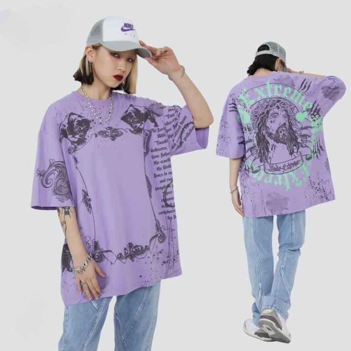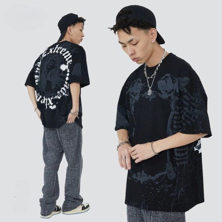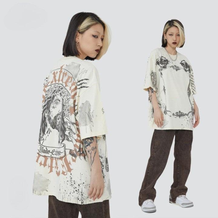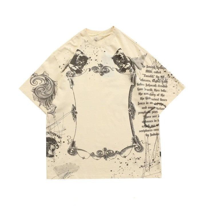 Vintage Graphic Printed T-Shirt: Infuse street style with a vintage vibe. Crafted from cotton. O-neck. broadcloth fabric. showcasing abstract patterns.