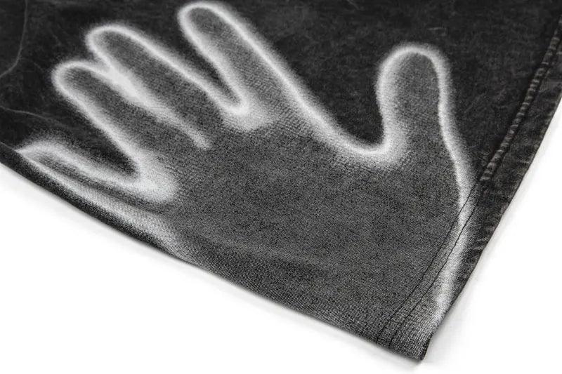 Discover timeless style with our Vintage Hand Palm Washed T-Shirt. Made of cotton broadcloth with an O-Neck collar and striking hand graphic print.