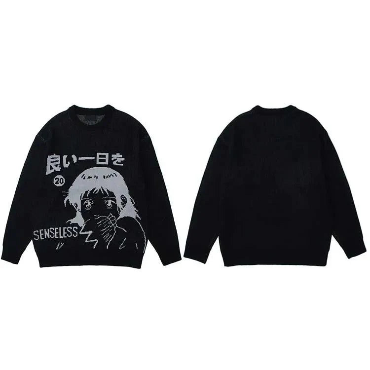 Introducing our Senseless Harajuku Sweater: a blend of retro charm and Harajuku street style. Crafted with high-quality yarn. it features intricate patterns and vibrant colors reminiscent of the eclectic fashion scene. With a relaxed fit and cozy feel. it adds personality to any outfit. Pair it with jeans or a funky skirt for a fashion-forward look. Embrace creativity and individuality with this must-have addition to your wardrobe.