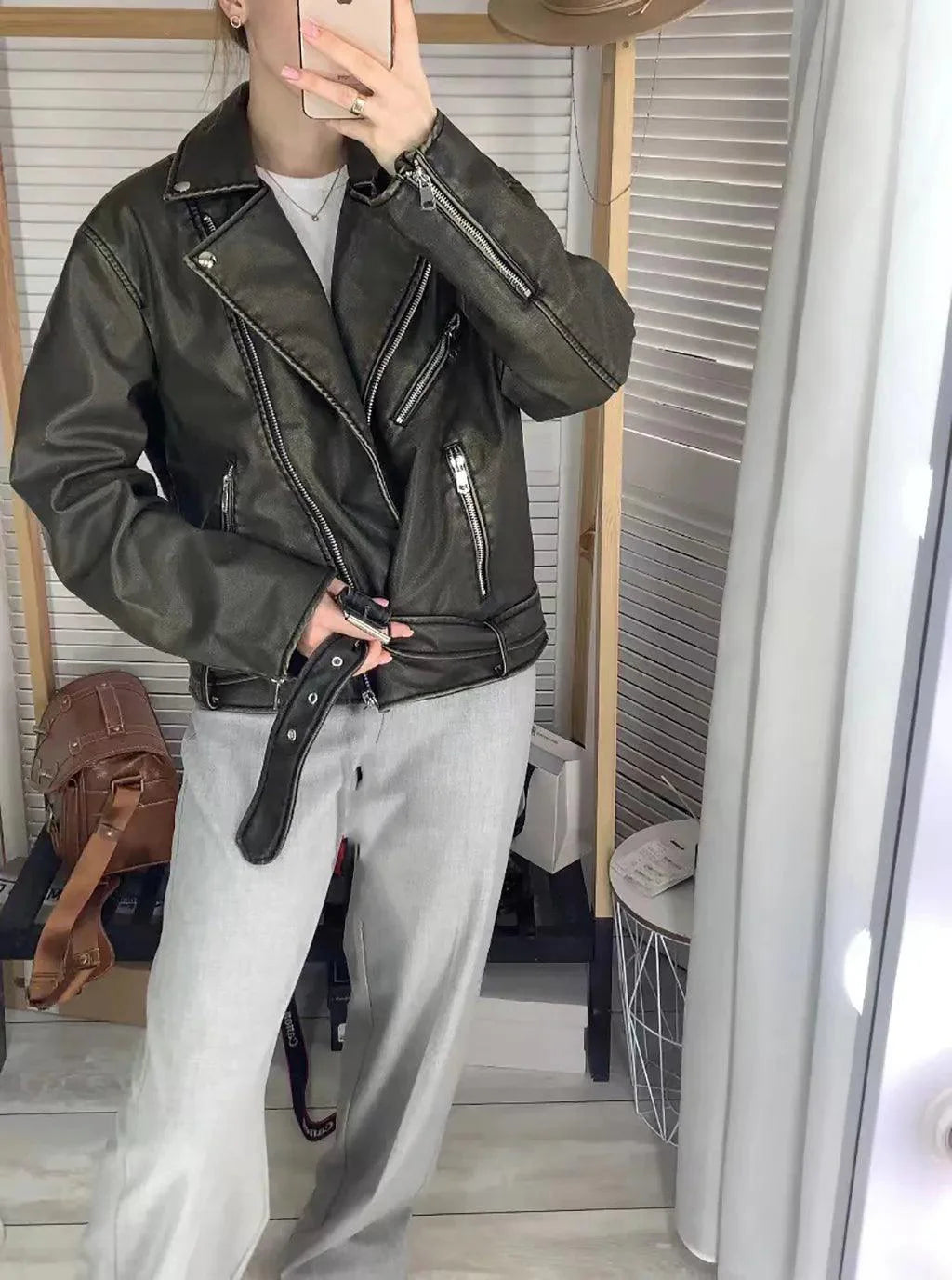 The Faux Leather Jacket features a zipper closure and a chic vintage style paired with pockets and zippers for added decoration. The biker coat is designed in a fashionable streetwear style. with a short length and a turn-down collar. Made from a blend of leather and suede. it is perfect for any occasion.