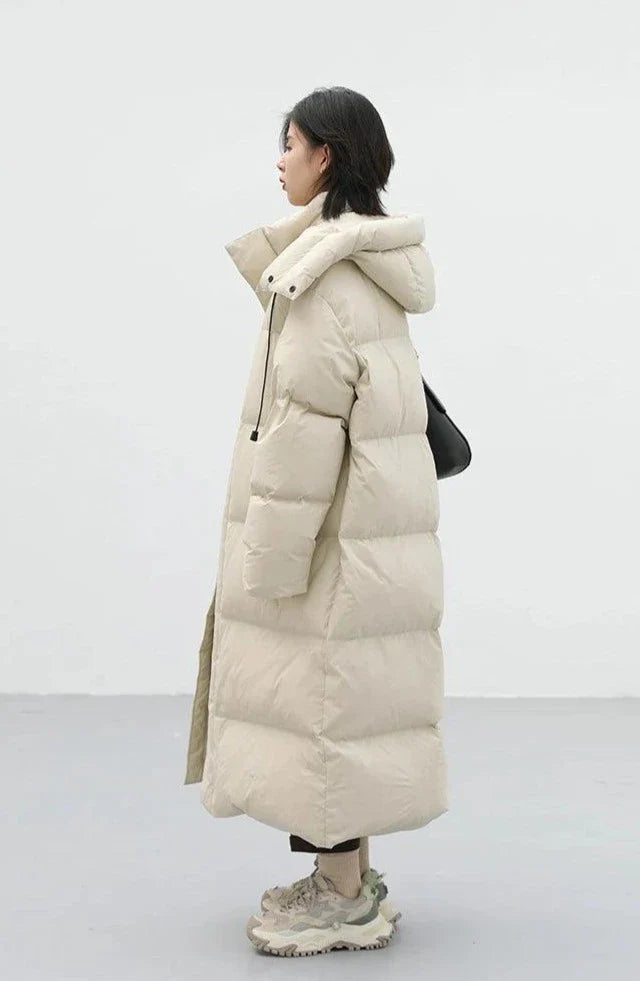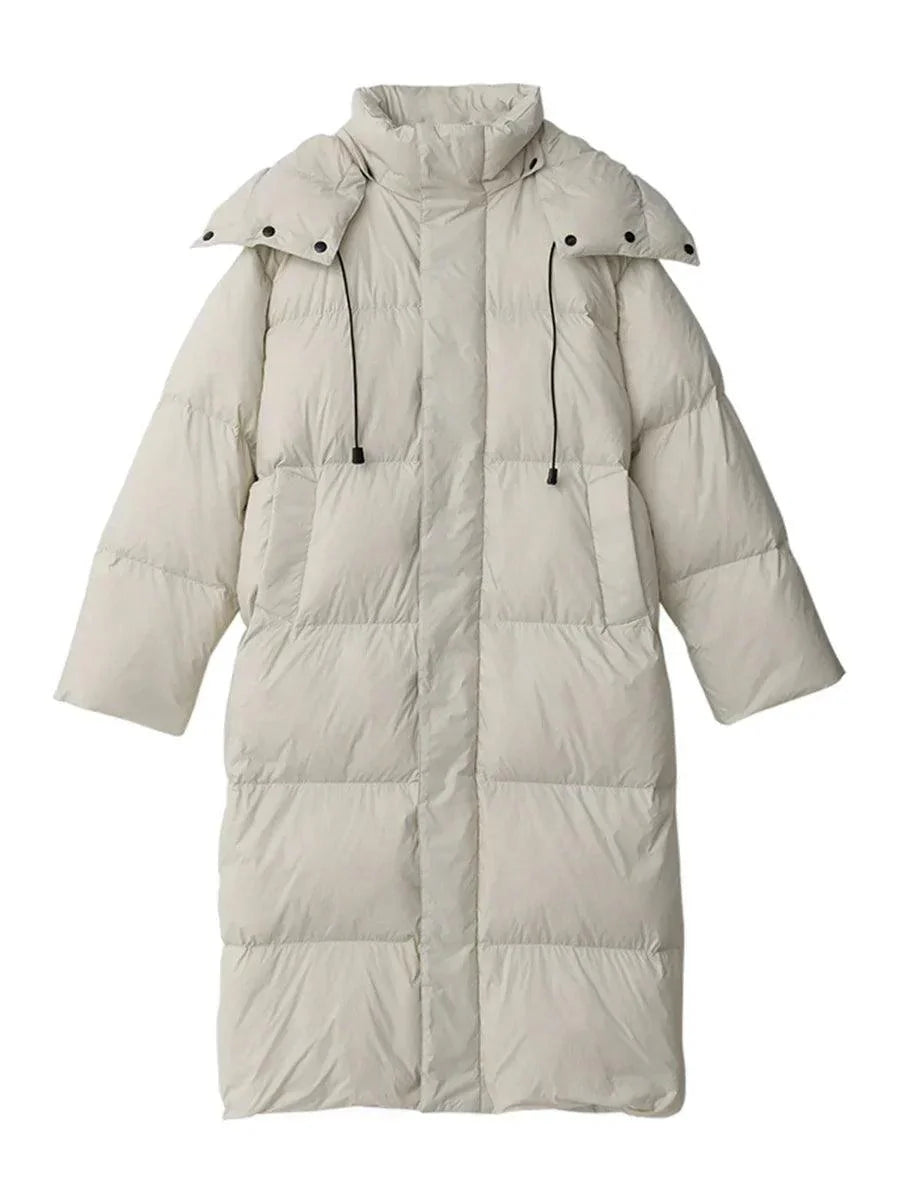 Introducing Vonvex's Vintage Long Down Women's Jacket. Crafted from nylon with 90% white duck down filling. it offers warmth and style. With a thick. long design and wide-waisted type. it's perfect for cold weather. Featuring a zipper closure and solid pattern. it exudes timeless elegance. Embrace comfort and sophistication with this versatile jacket. reflecting Vonvex's dedication to quality and fashion.