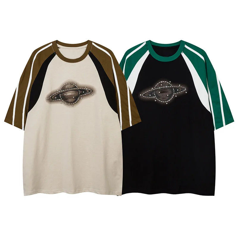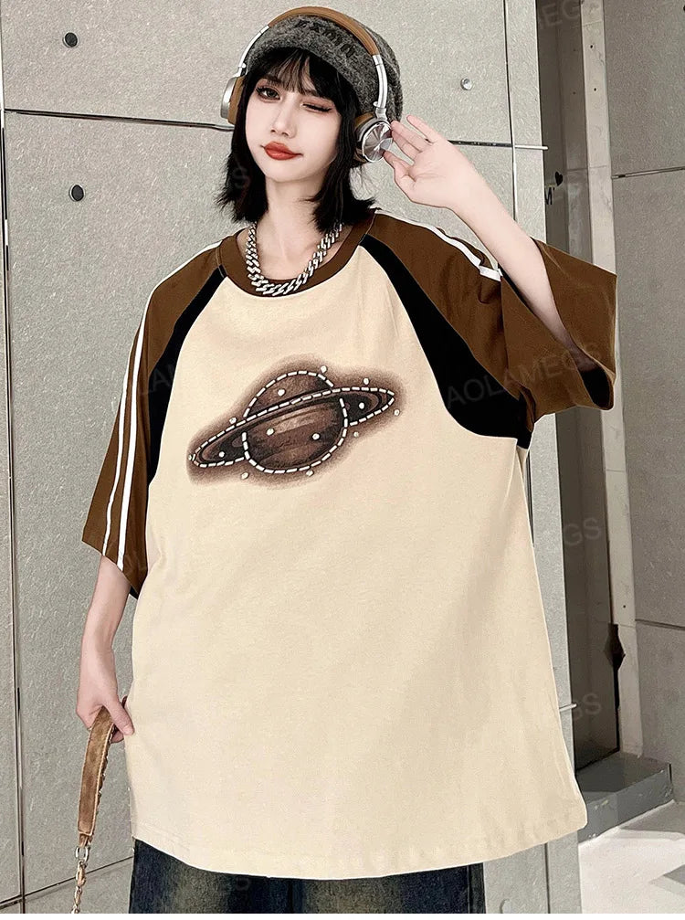 Discover Vonvex's Vintage Printed Galaxy T-Shirt. Made from cotton broadcloth with an O-neck collar and captivating cartoon pattern. Ideal for adding retro charm to your wardrobe.