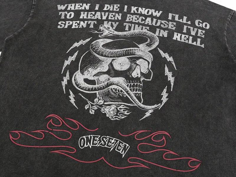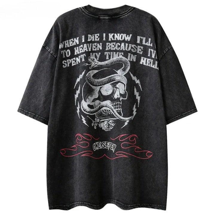 Elevate your street style with our Vintage Snake Skeleton Print T-Shirt. Embrace vintage Y2K vibes. crafted from comfy cotton with an O-Neck collar and bold graphic print.