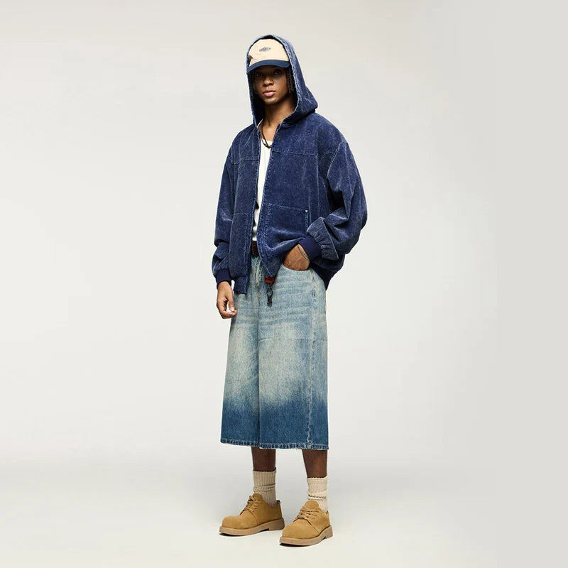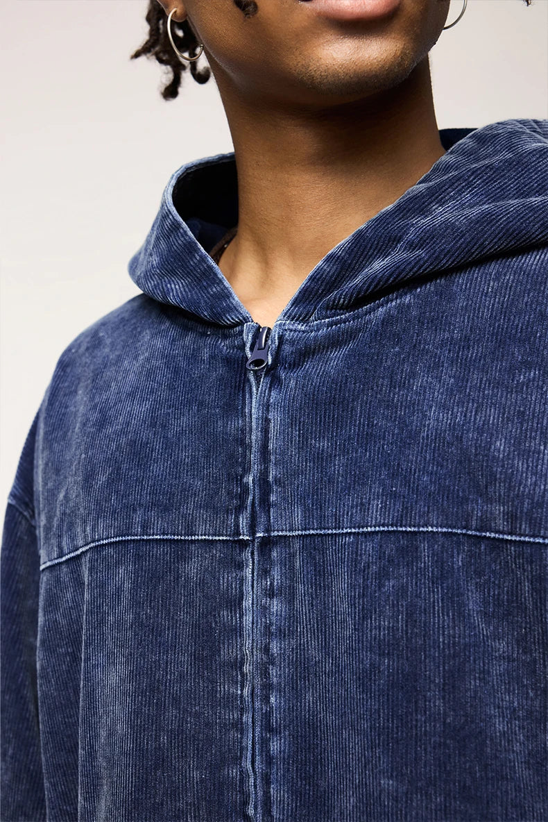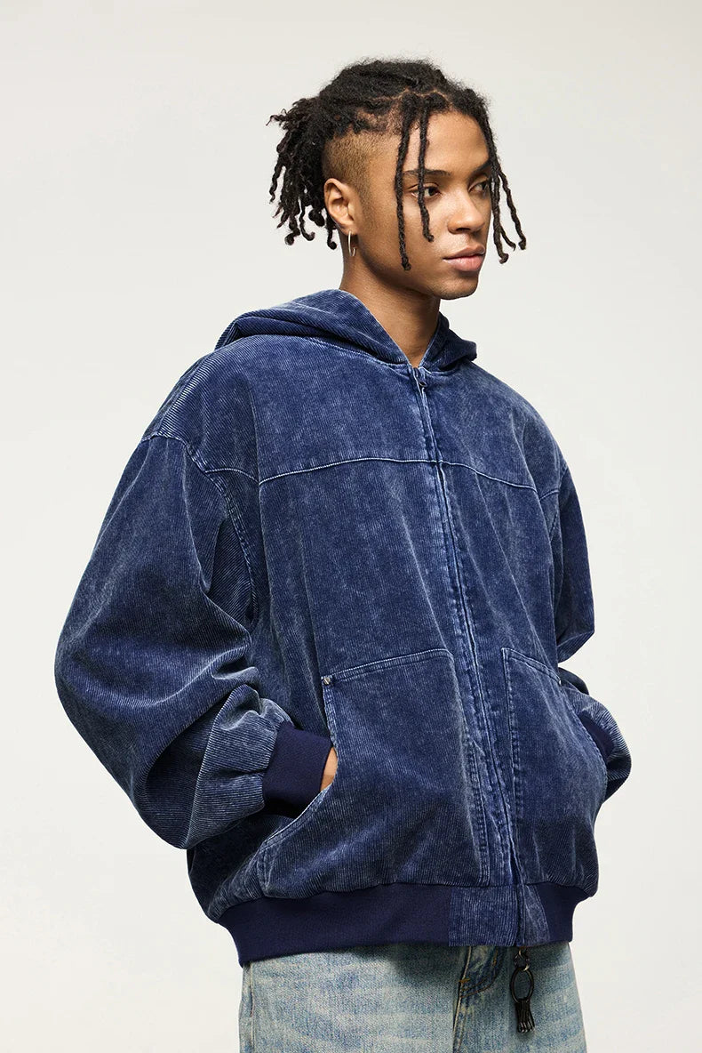 "Washed Faded Corduroy Hooded Jacket: Retro street style meets comfort with a washed finish and cozy hood."SPECIFICATIONS