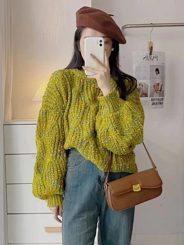 Women's color block loose twist crew neck sweater. Please use the size guide shown in our pictures. Before choosing a size. please read each element of the size guide carefully. Unique design. classic style. casual and comfortable. It is suitable for outing and leisure. The size is measured manually. and the error of 1-3cm is normal.
