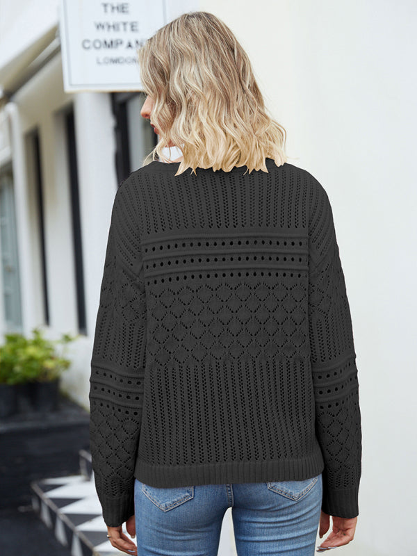 Women's round neck hollow diamond pullover sweater. Please use the size guide shown in our pictures. Before choosing a size. please read each element of the size guide carefully. Unique design. classic style. casual and comfortable. It is suitable for outing and leisure. The size is measured manually. and the error of 1-3cm is normal.