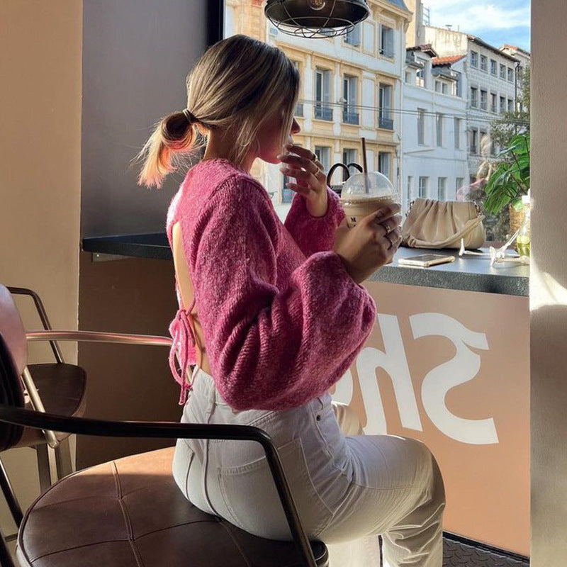 Women's round neck long sleeve sexy backless strappy sweater short versatile hot girl top is suitable for a variety of scenes. The simple design makes the boring season colorful and interesting. A variety of matching options make you confident and beautiful. Please use the sizing guide shown in our images when purchasing. Please read each element in the size guide carefully before choosing a size. Sizes are measured manually. and an error of 1-3cm is normal.
