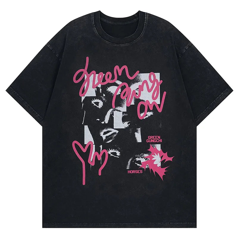 Discover Vonvex's Women's Face Printed T-Shirt. Crafted from cotton broadcloth. featuring an O-neck collar and charming cartoon face pattern. Perfect for adding a unique flair to your wardrobe.