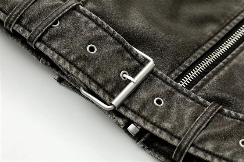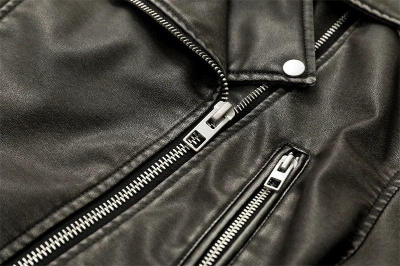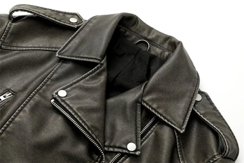 Revive your street style with our Women's Washed Leather Jacket. Crafted in faux leather. featuring zipper closure. pockets. and vintage wash.