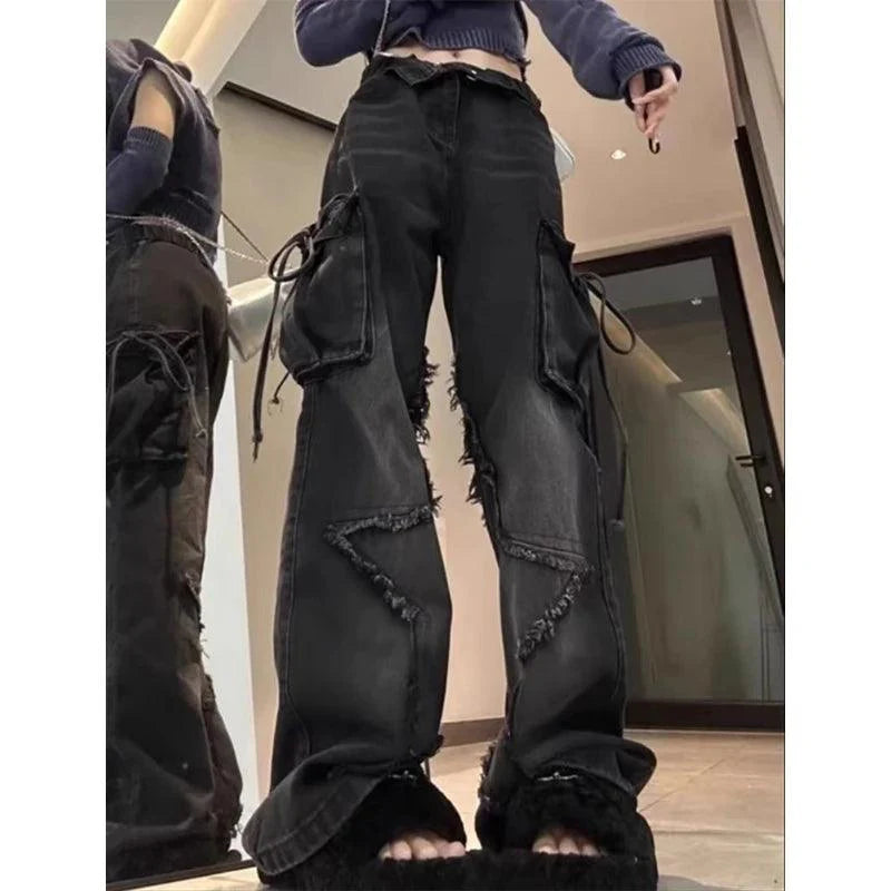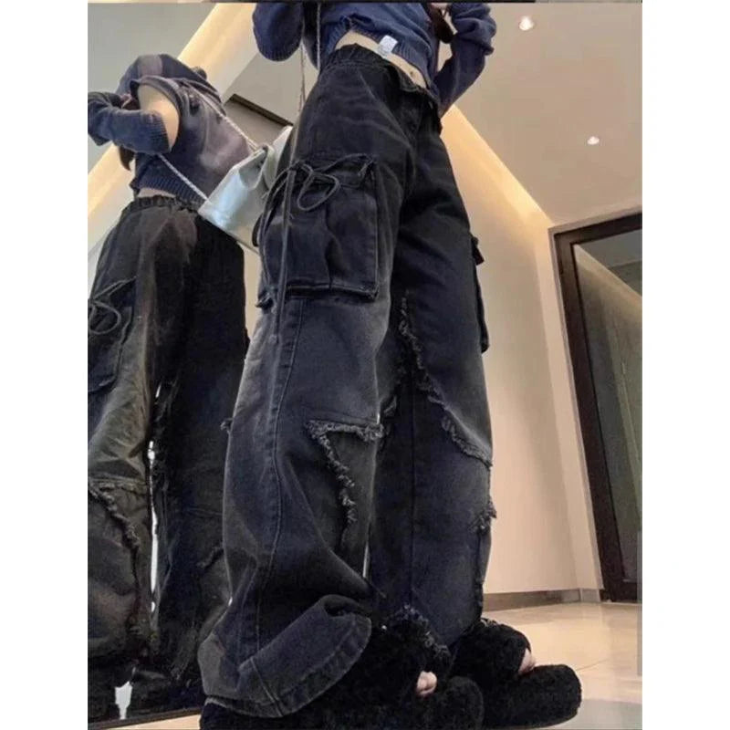 "Elevate your style with our Y2K Black Gothic Cargo Jean. Vintage-inspired design meets gothic flair. crafted from cotton denim blend."