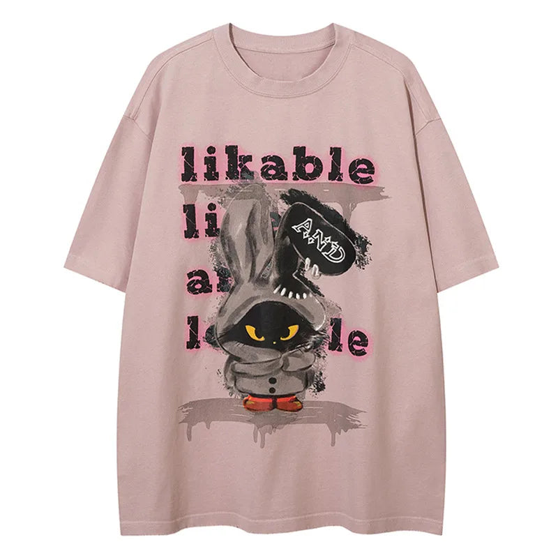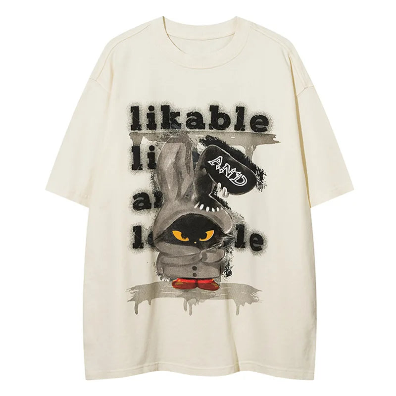 Step into whimsy with Vonvex's Y2K Cartoon Rabbit Loose T-Shirt. Made from cotton broadcloth. featuring an O-neck collar and playful cartoon rabbit pattern. Ideal for adding quirky charm to your wardrobe.