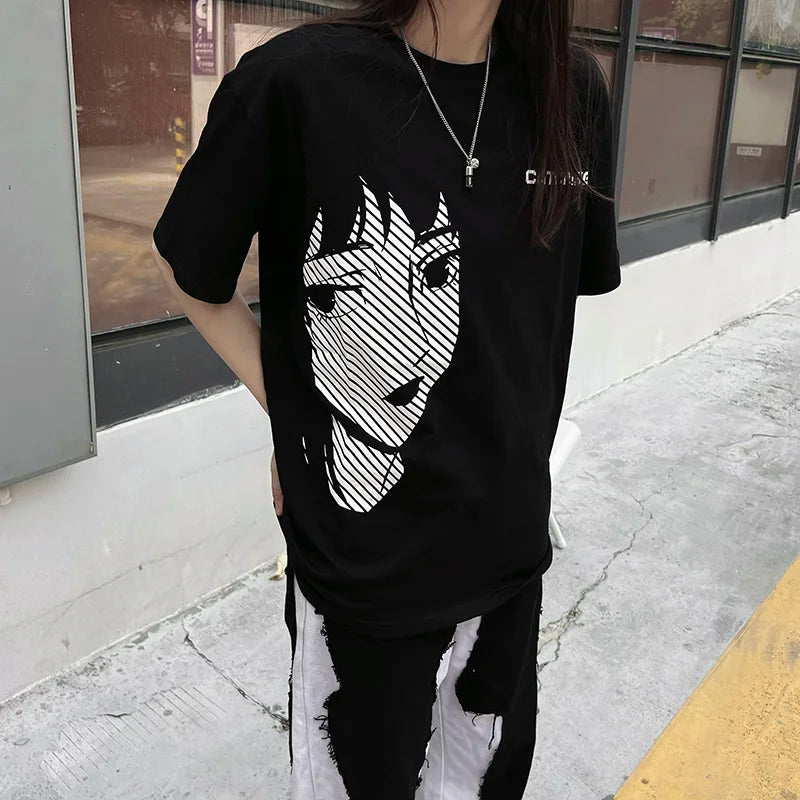 Elevate your street style with Vonvex Clothing's Y2K CATCASE Anime Girl Oversized T-Shirt. Made from durable broadcloth cotton. it features a vibrant cartoon pattern. O-neck collar. and regular fit. offering both comfort and a bold aesthetic. Stand out in any crowd with this perfect blend of nostalgic Y2K flair and modern streetwear fashion from Vonvex Clothing.