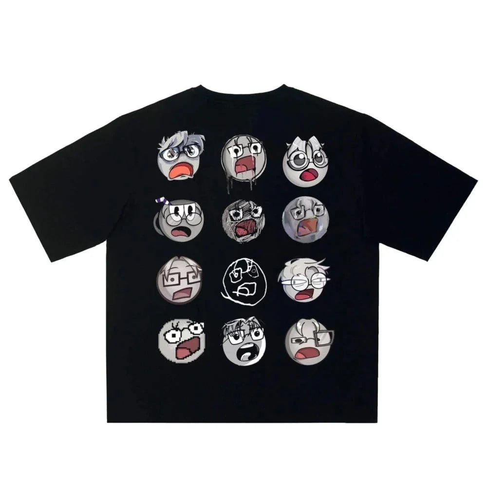 The Y2K Emoji Faces T-shirt adds a playful. retro vibe to your style. featuring iconic emoji graphics that bring a nostalgic yet trendy touch to casual looks.