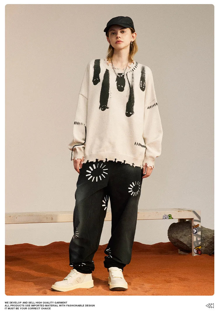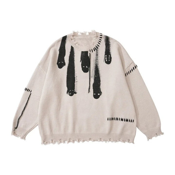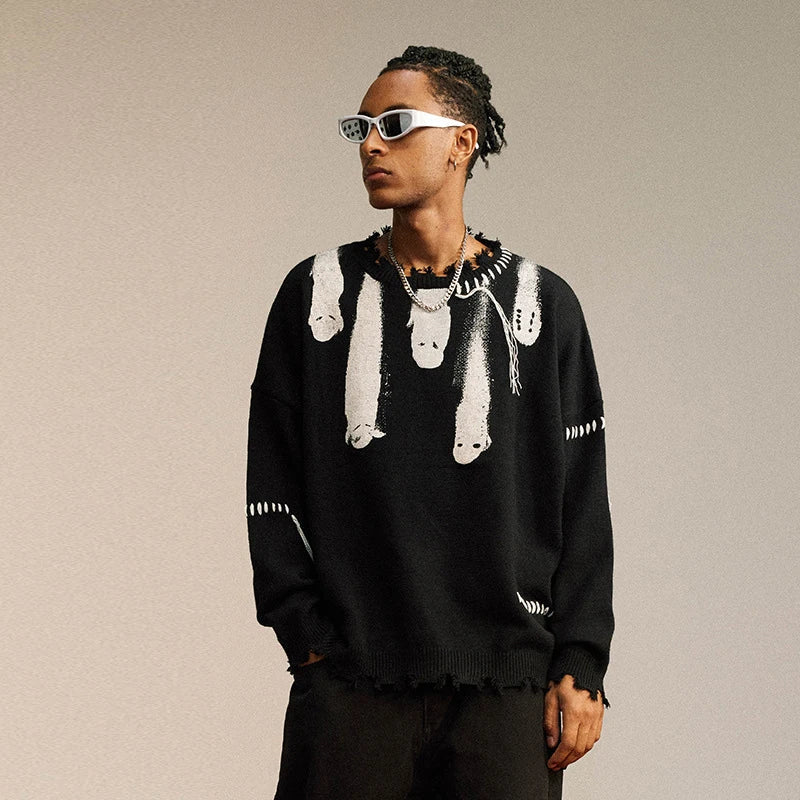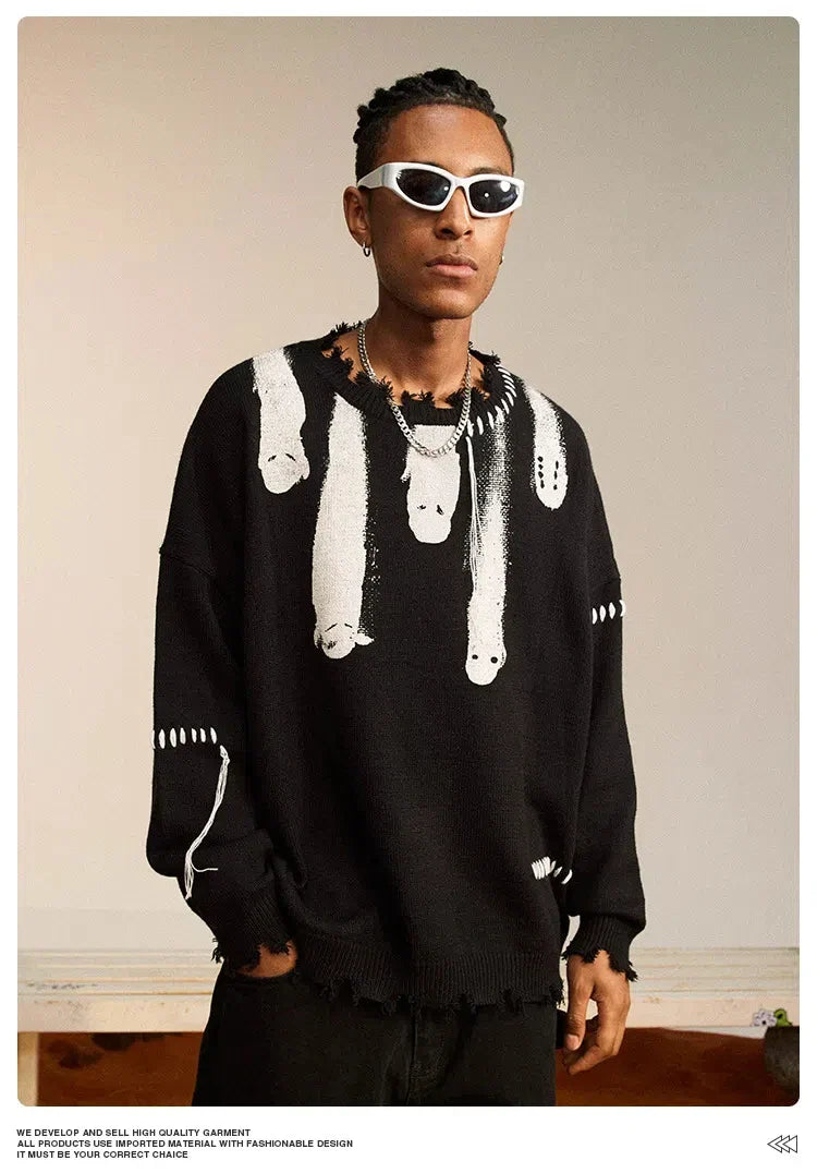 Experience the fusion of Y2K nostalgia and modern elegance with our Ghost Knitted Sweater. Crafted from a blend of standard wool and spandex. this O-neck pullover features a unique print pattern. tassel decorations. and computer-knitted precision for a comfortable. stylish fit.