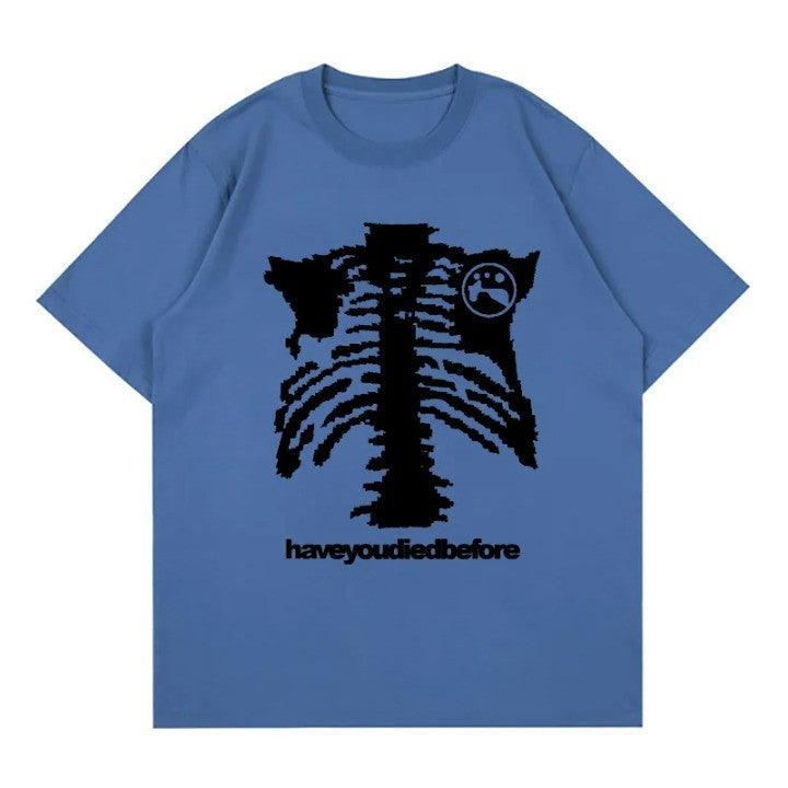 Embrace vintage y2k vibes with our Gothic Printed Skull Oversized T-Shirt. Made of cotton. O-neck collar. Broadcloth fabric. and a bold skull print for street-style edge.