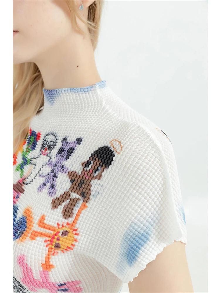Fabric Type: blended Material: Polyester Pattern Type: Hand-Painted Pattern Them: Funny Collar: O-Neck Fit Type: Slim This top is made from a high-quality blend of polyester fabric. ensuring durability and comfort. The hand-painted pattern adds a unique and playful touch to your wardrobe. With a classic O-neck collar and slim fit. this top is a stylish and flattering choice for any occasion.