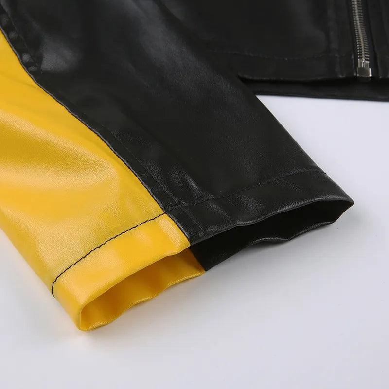 This Y2k Harajuku Jacket features a blend of Polyester and Spandex fabric. offering a streetwear style with a Regular collar and zipper closure. The Regular sleeve design is adorned with a Patchwork pattern.
