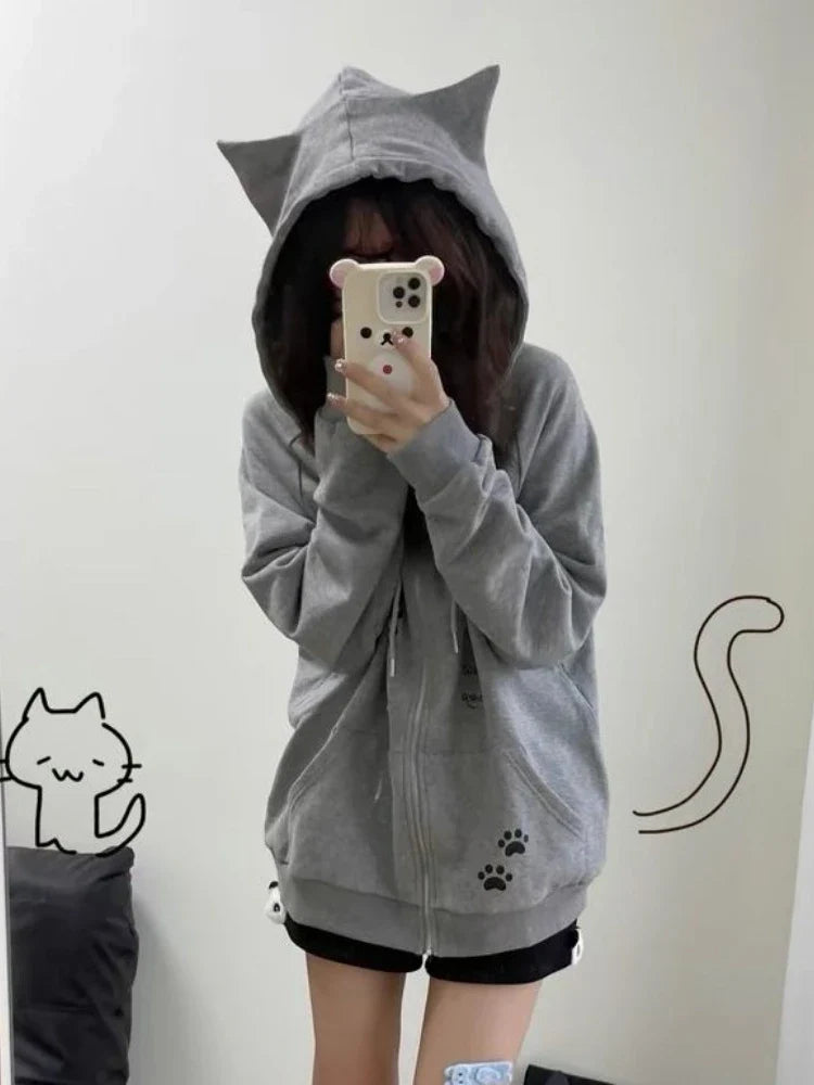 The Y2K Kitty Paw Print Hoodie features adorable paw print designs that add a playful touch to your streetwear collection. Made for comfort and style. it's perfect for cat lovers looking to express their fun side!