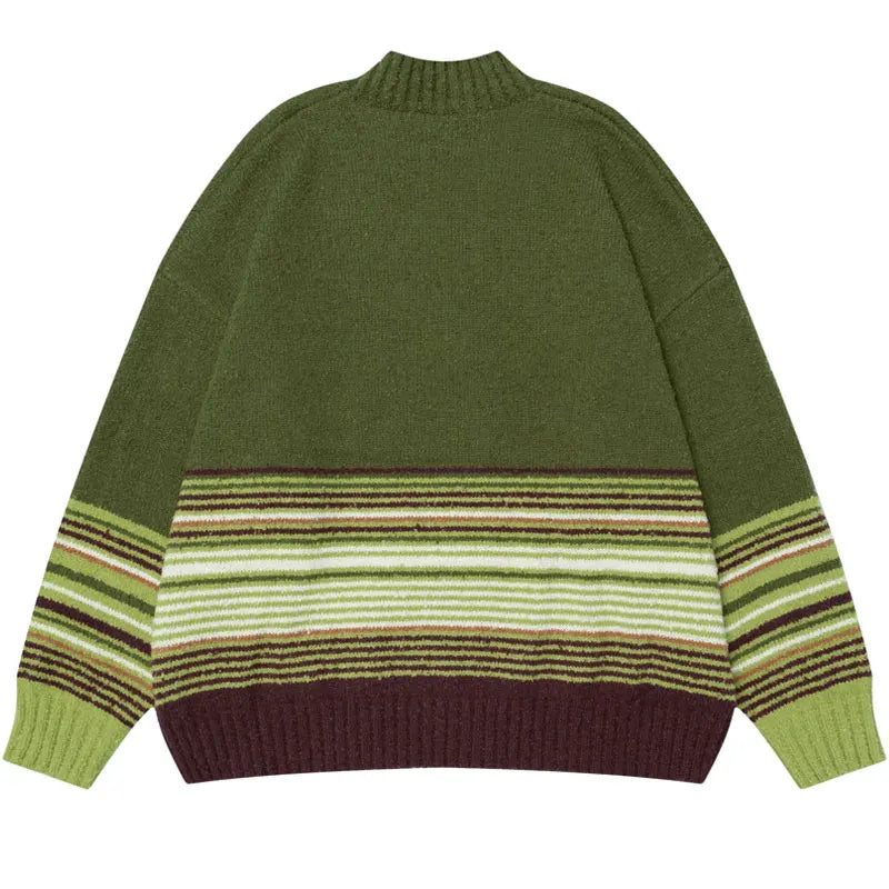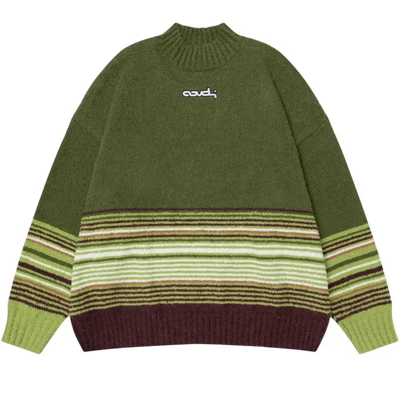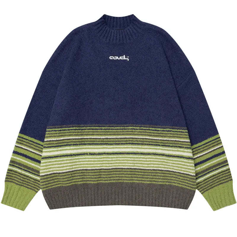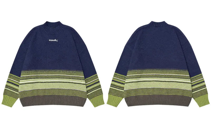 "Y2K Knitted Stripe Patchwork Turtleneck: Bold stripes and patchwork details for retro-chic vibes."