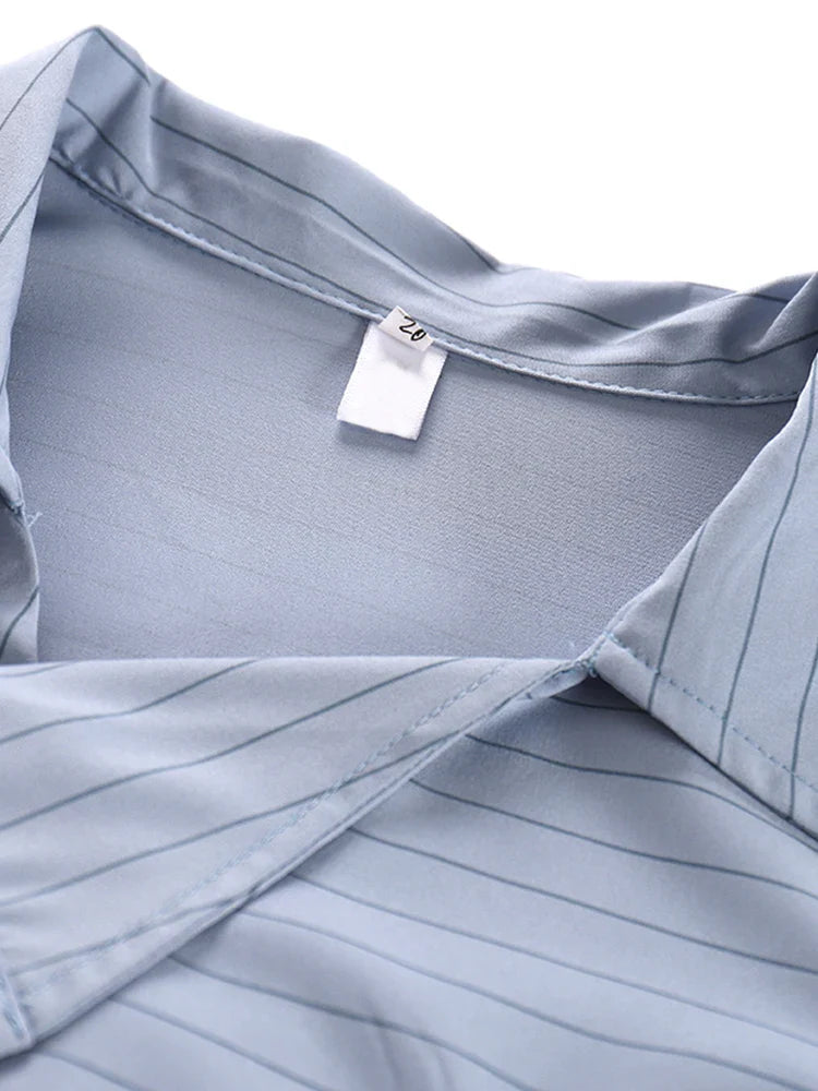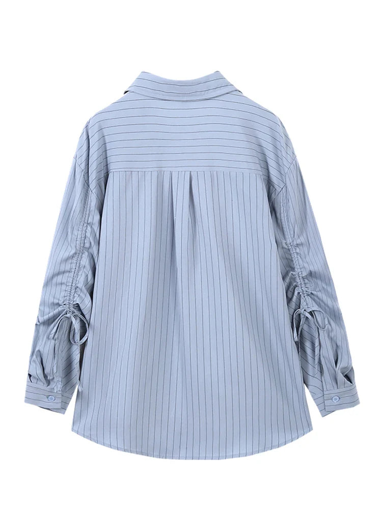 Y2K Korean Striped Shoujo Shirt: Playful and trendy. featuring delicate stripes and a relaxed fit inspired by Korean shoujo aesthetics. Perfect for a nostalgic Y2K vibe.