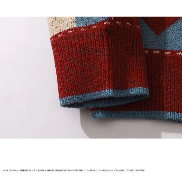 Y2K Love Wave Wool Sweater features a vibrant wave design. adding a playful touch to your winter wardrobe. Stay cozy and stylish all season long!