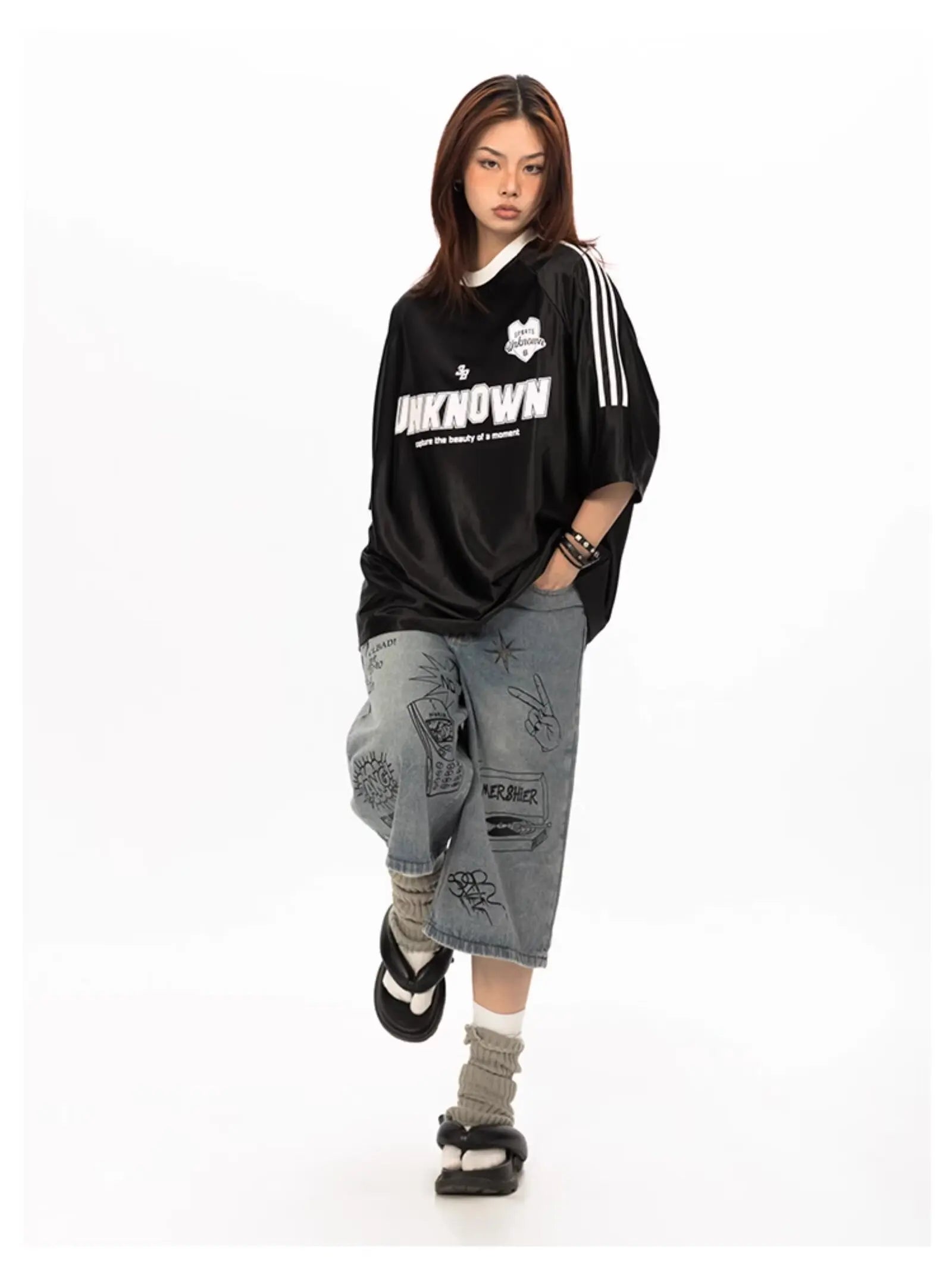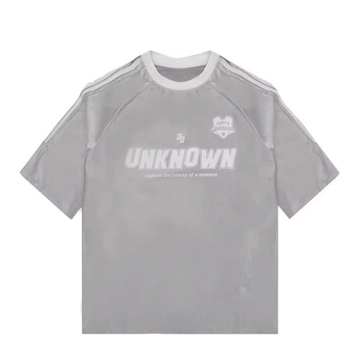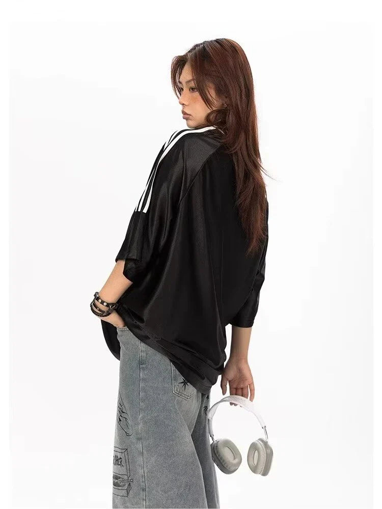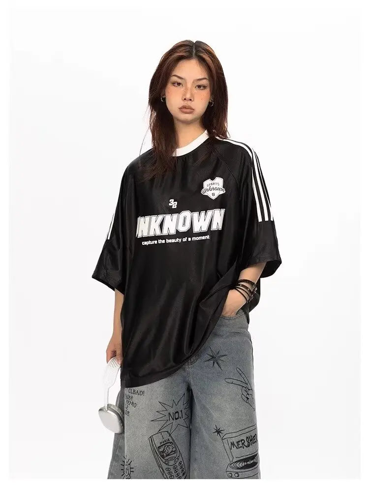 Introducing Vonvex's Y2K Metallic Silver Oversized T-Shirt. crafted from cotton for ultimate comfort. Featuring an O-neck collar and regular sleeves. this broadcloth fabric T-shirt showcases a unique patchwork pattern. The TAT weaving technique adds a touch of futuristic flair to this standout piece. perfect for making a bold fashion statement.