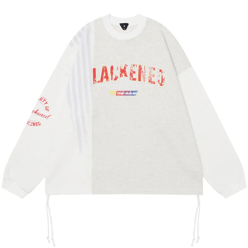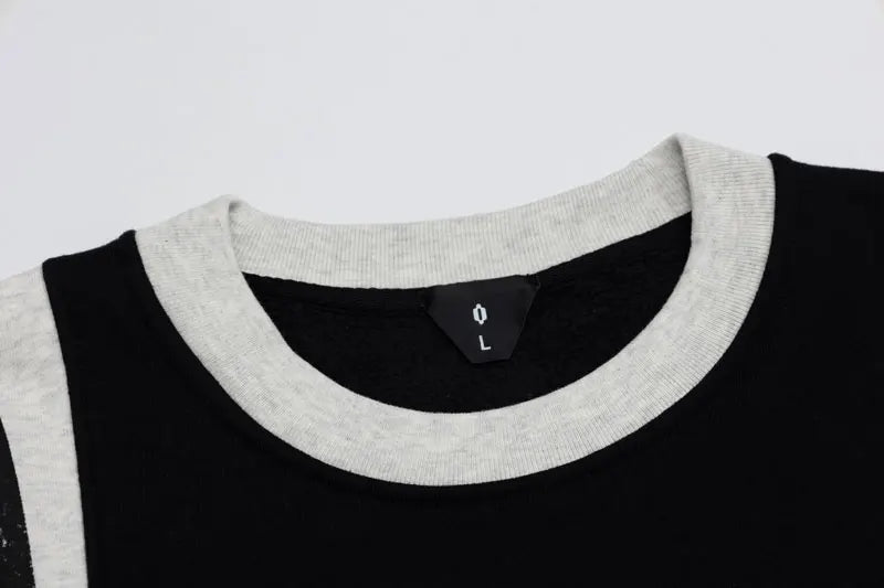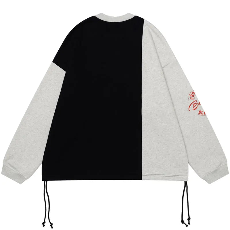 "Y2K Patchwork Half-Colored Sweater: A trendy blend of bold contrasts and retro patchwork style."