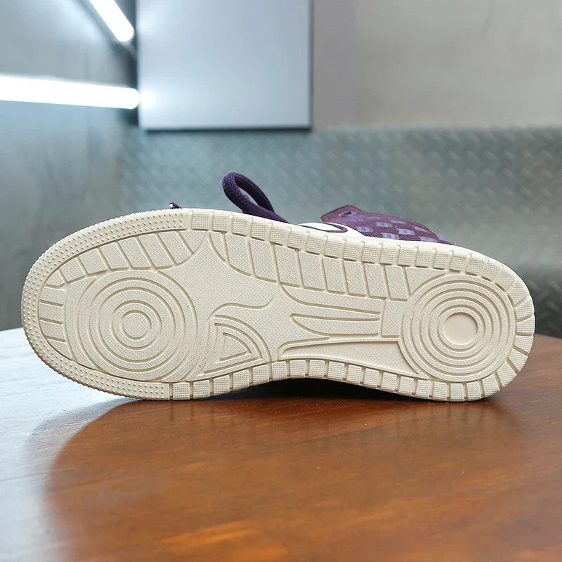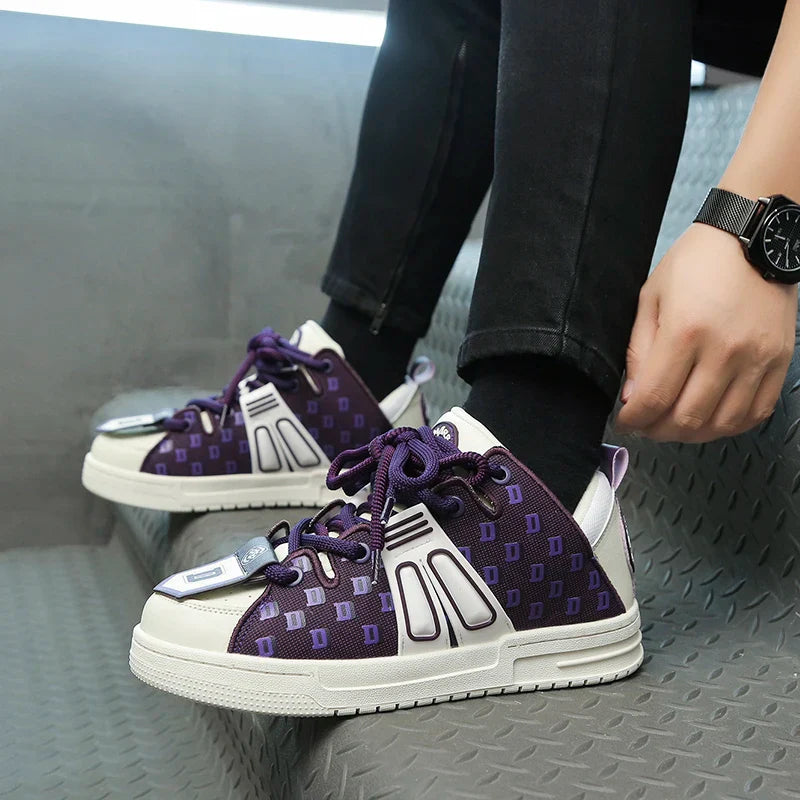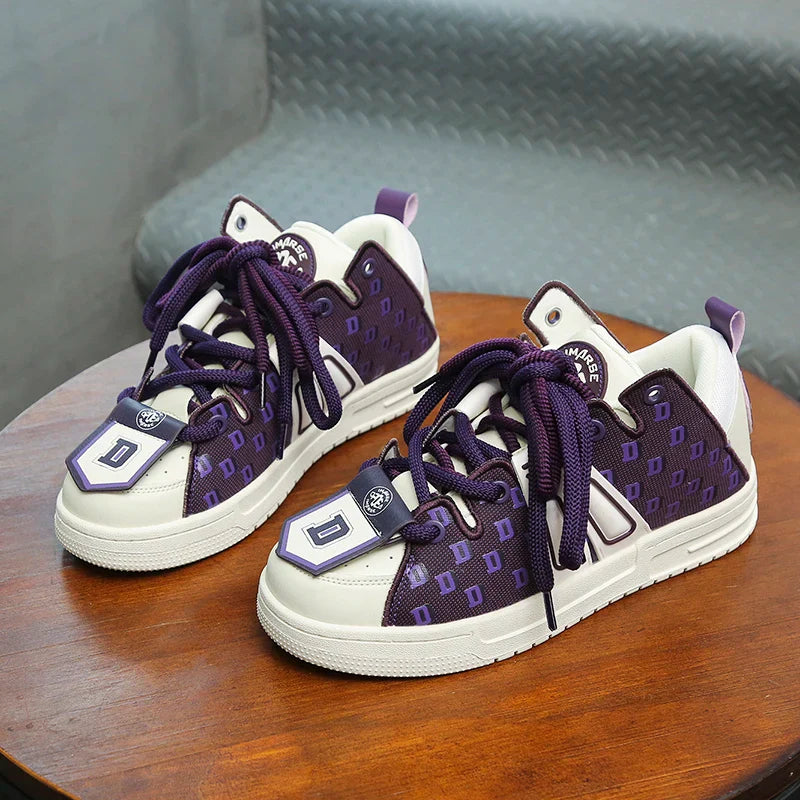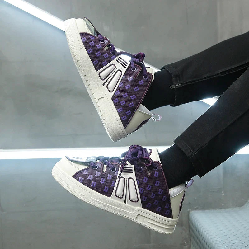 The Y2K Purple Pulse Sneakers bring retro-futuristic vibes with their bold purple accents and sleek design. making them the perfect addition to any nostalgic yet modern streetwear look.