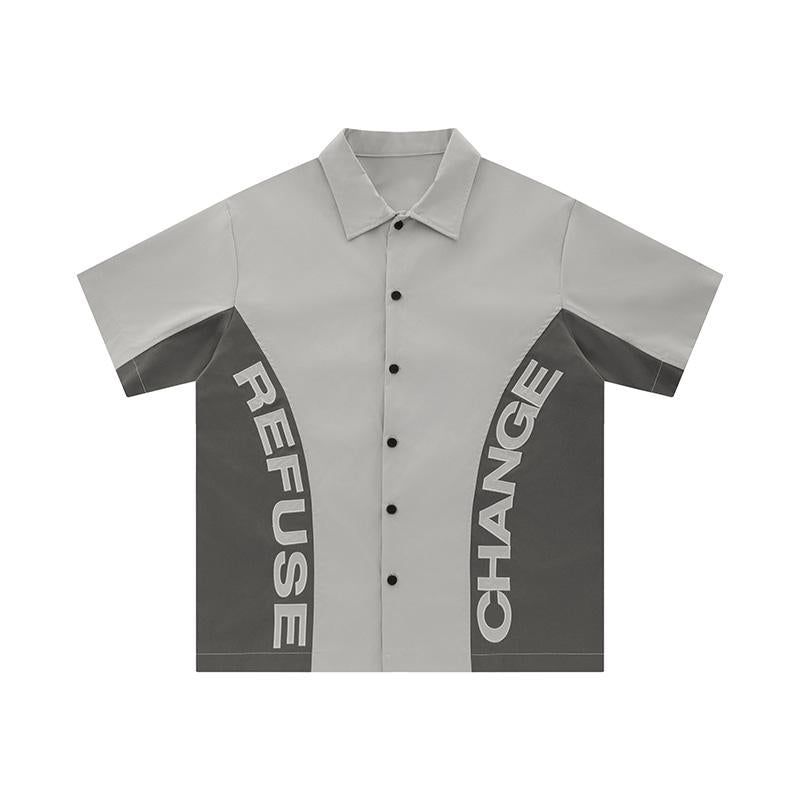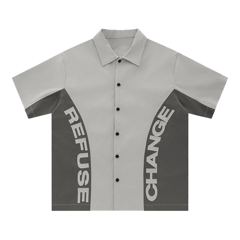 Elevate your Y2K style with the 'Refuse Change' Patchwork Shirt. This high-quality. oversized shirt combines a unique patchwork design and trendy fashion. Shop now at Vonvex Clothing!