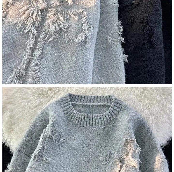 This sweater is made from polyester fabric and has a standard thickness. It features a tassel decoration and an O-Neck collar. It has a regular sleeve style. and a cartoon pattern. and is computer-knitted using standard wool.