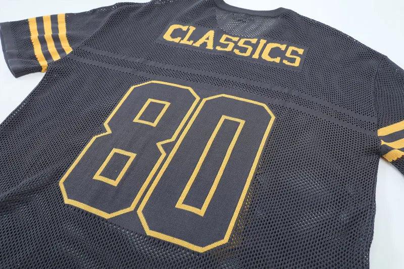 Get that vintage street style with our Y2K Retro Knitted Letter Oversized T-Shirt. Polyester. V-neck. and bold patchwork letter design for a timeless look!