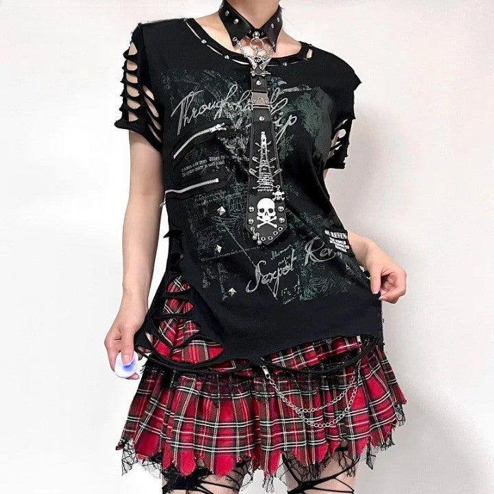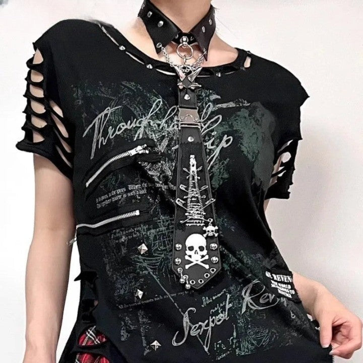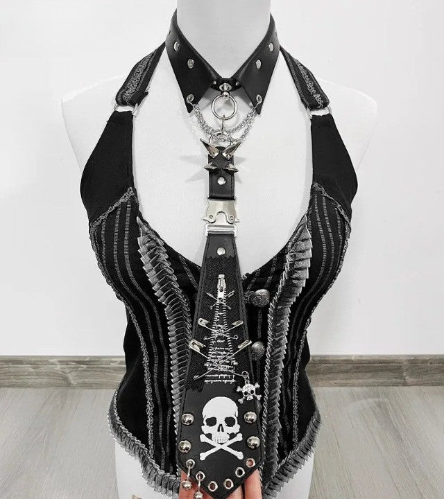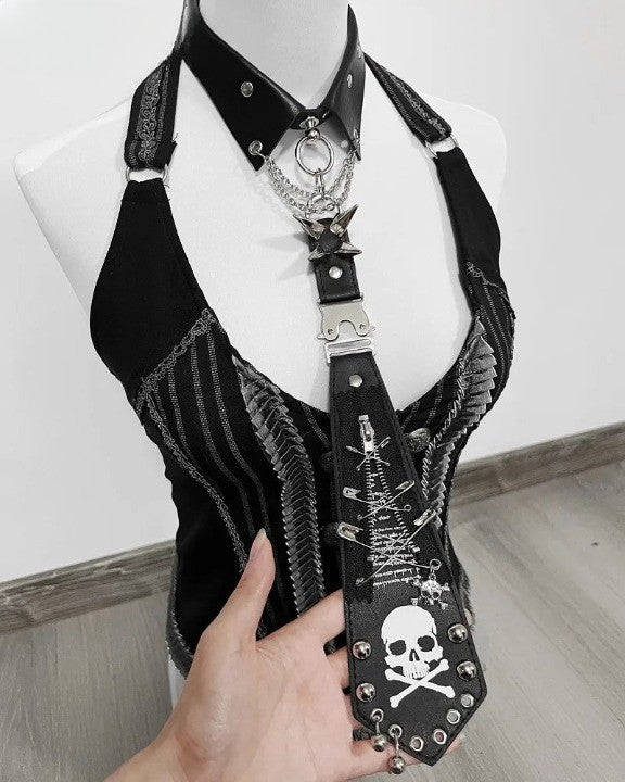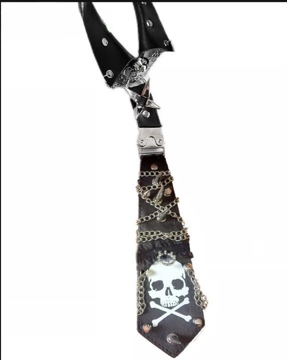 The Y2K Skull Chain Tie features a bold skull design with edgy chain details. blending nostalgic Y2K aesthetics with a rebellious twist for a standout look.