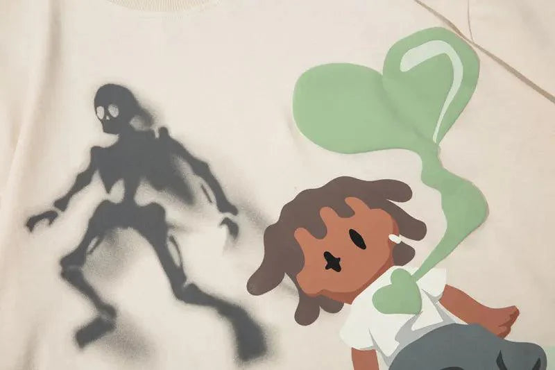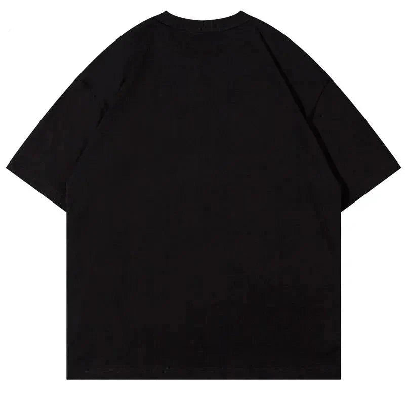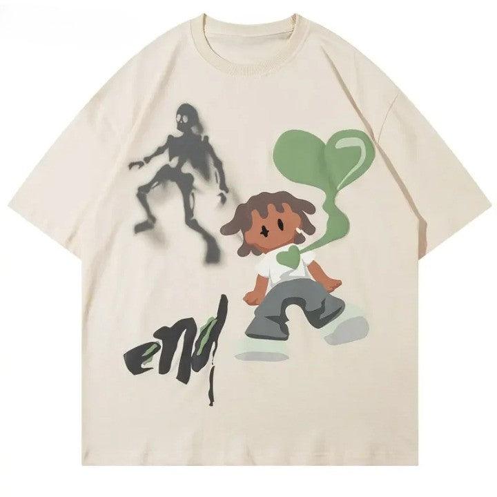 Elevate your street style with our Y2K Skull Heart Oversize T-Shirt. Crafted from cotton with an O-neck collar and abstract pattern. Vintage vibes await!