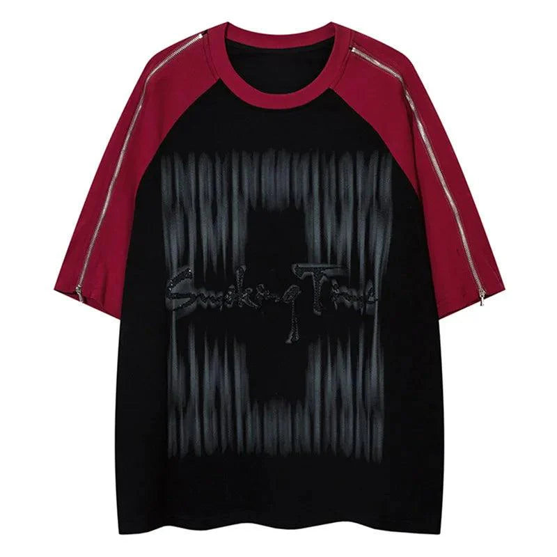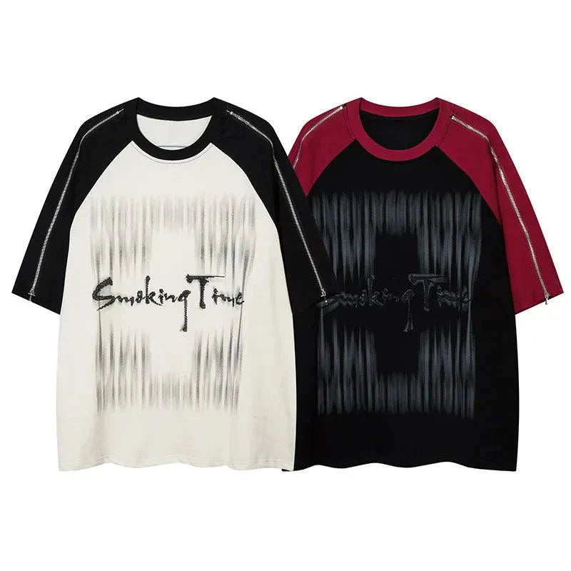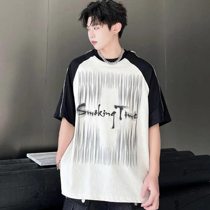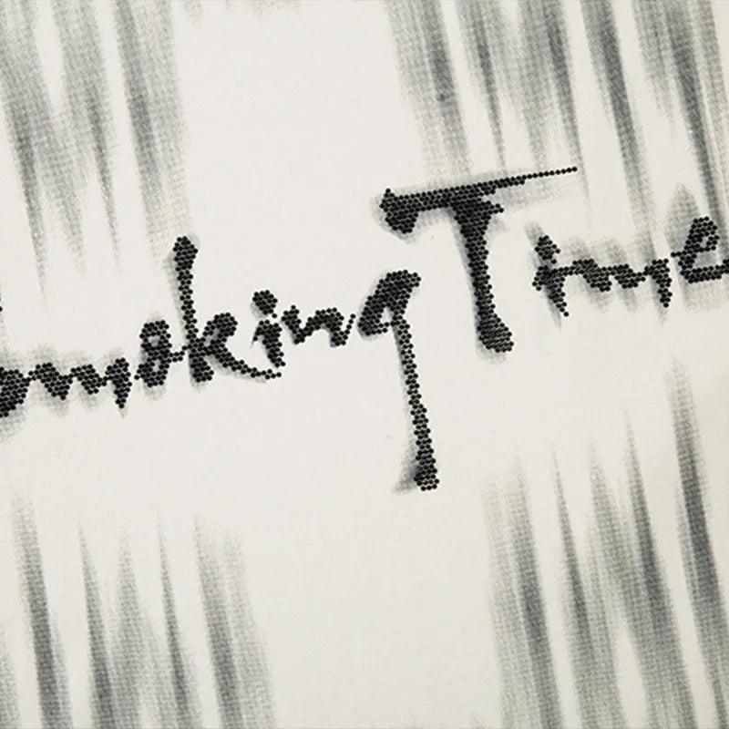 Y2K "SMOKING TIME" Oversized T-Shirt: Vintage street style in polyester-cotton blend. O-neck. Broadcloth fabric with printed patterns.