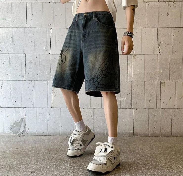 This modern Y2K Spider Cobweb Denim Pants style features patchwork decoration. a regular fit. and a mid-waist type closure with a button fly. Crafted with a blend of denim and bamboo fiber. the pattern is a spider cobweb motif.