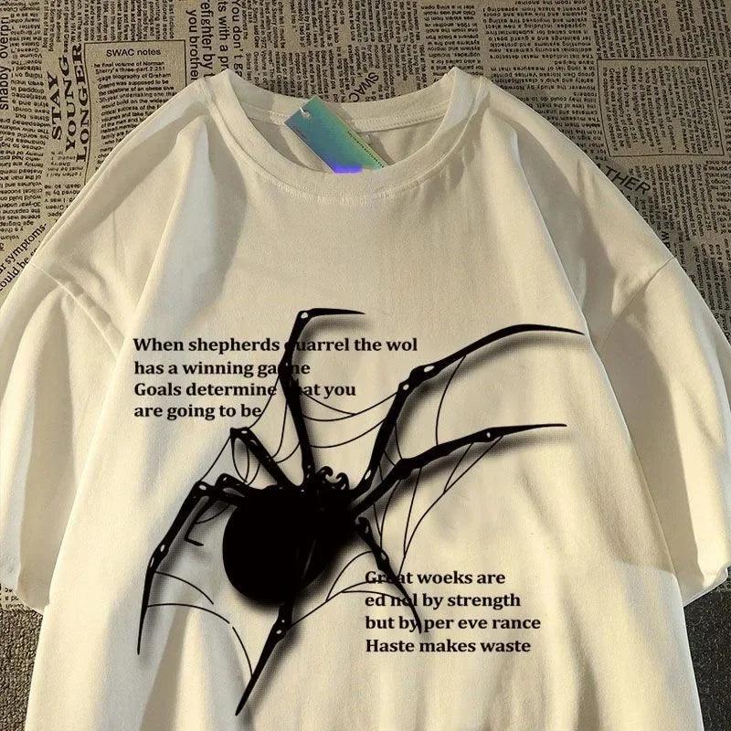Step into Y2K style with our Spider Graphic Oversized T-Shirt. Crafted from cotton. polyester. and spandex blend. perfect for vintage street style.
