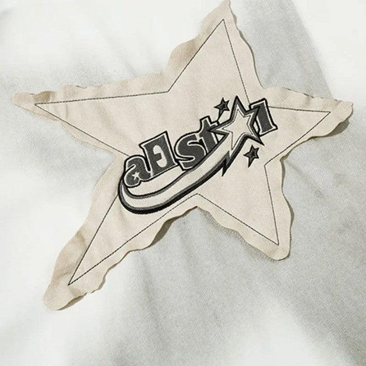 Elevate your style with our Y2K Star Splicing Oversized T-Shirt. Crafted from a blend of cotton and polyester. featuring a unique patchwork pattern and O-Neck collar.