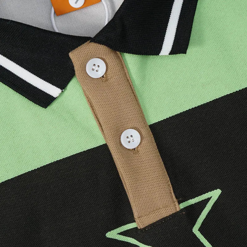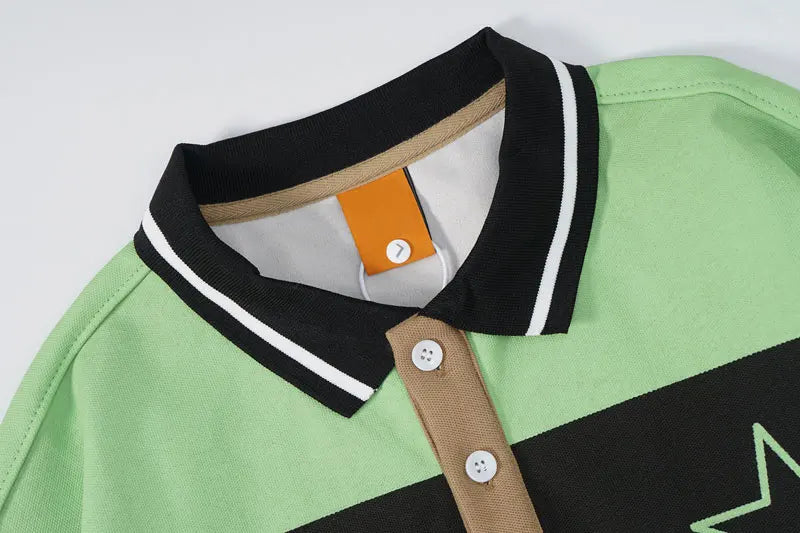 Y2K Stars Polo Colorful Sweater: Vibrant and fun. featuring a bold star design and colorful accents with a classic polo collar for a nostalgic Y2K vibe.