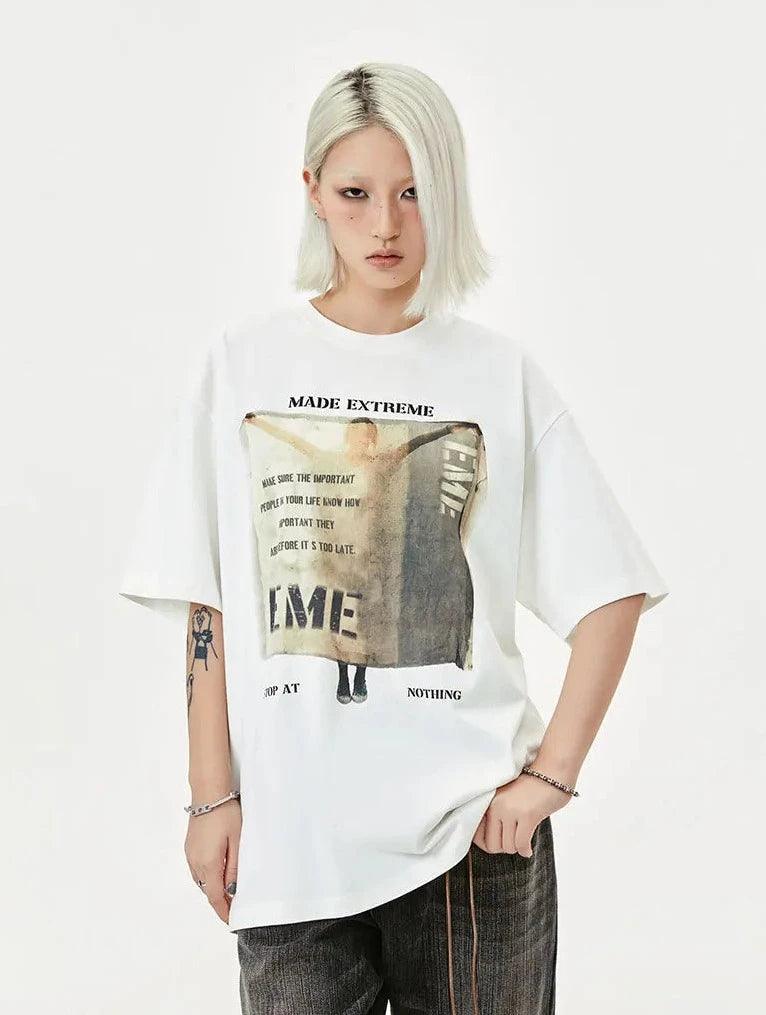 Elevate your street style with our Y2K "STOP AT NOTHING" T-Shirt. Made of cotton with an O-neck collar and broadcloth fabric for a vintage vibe.