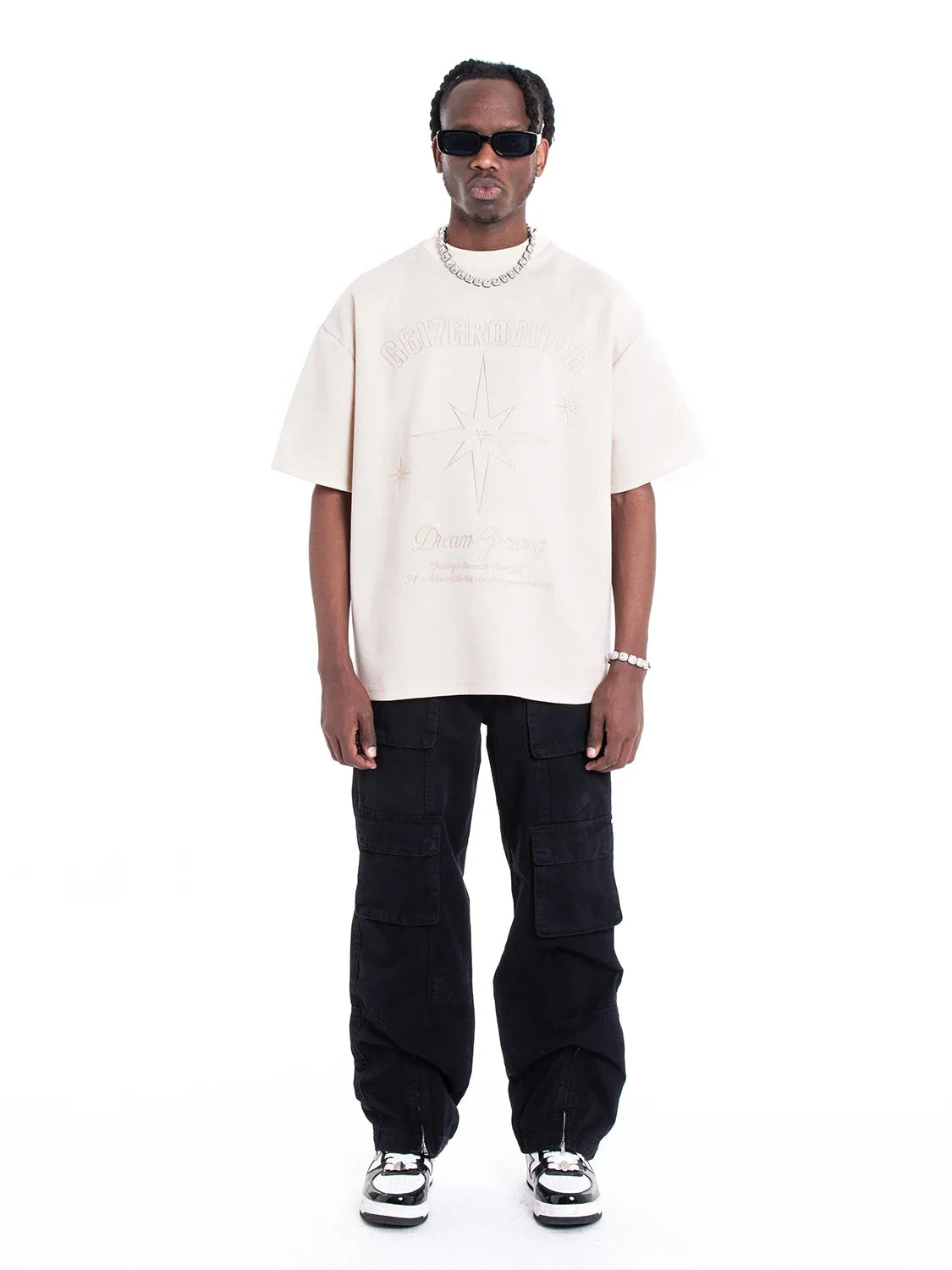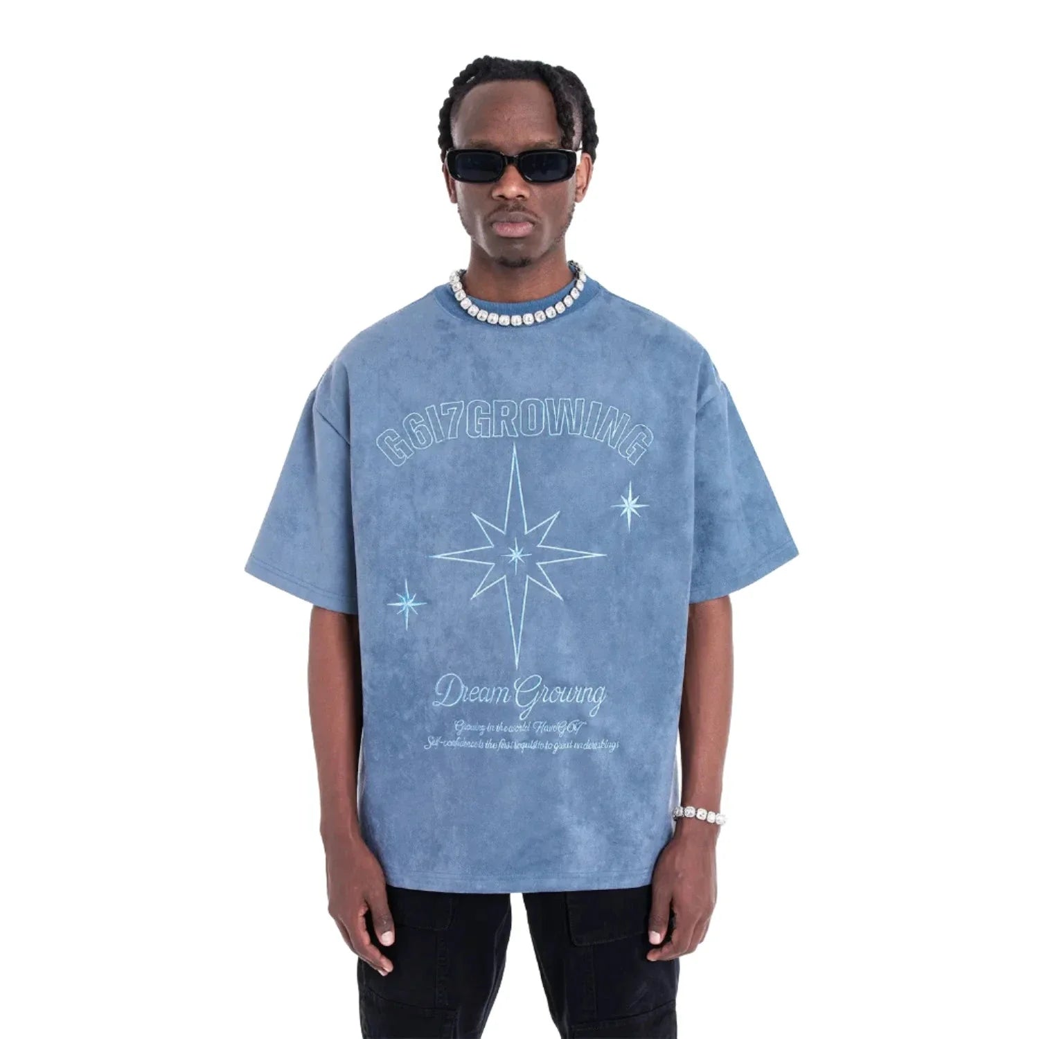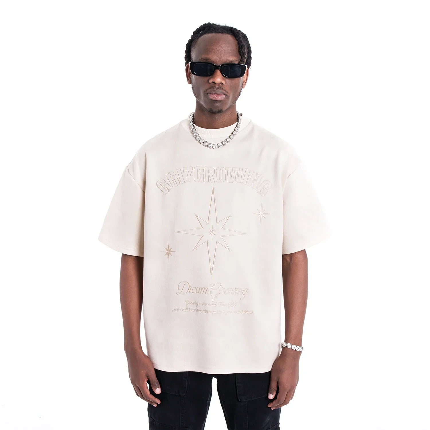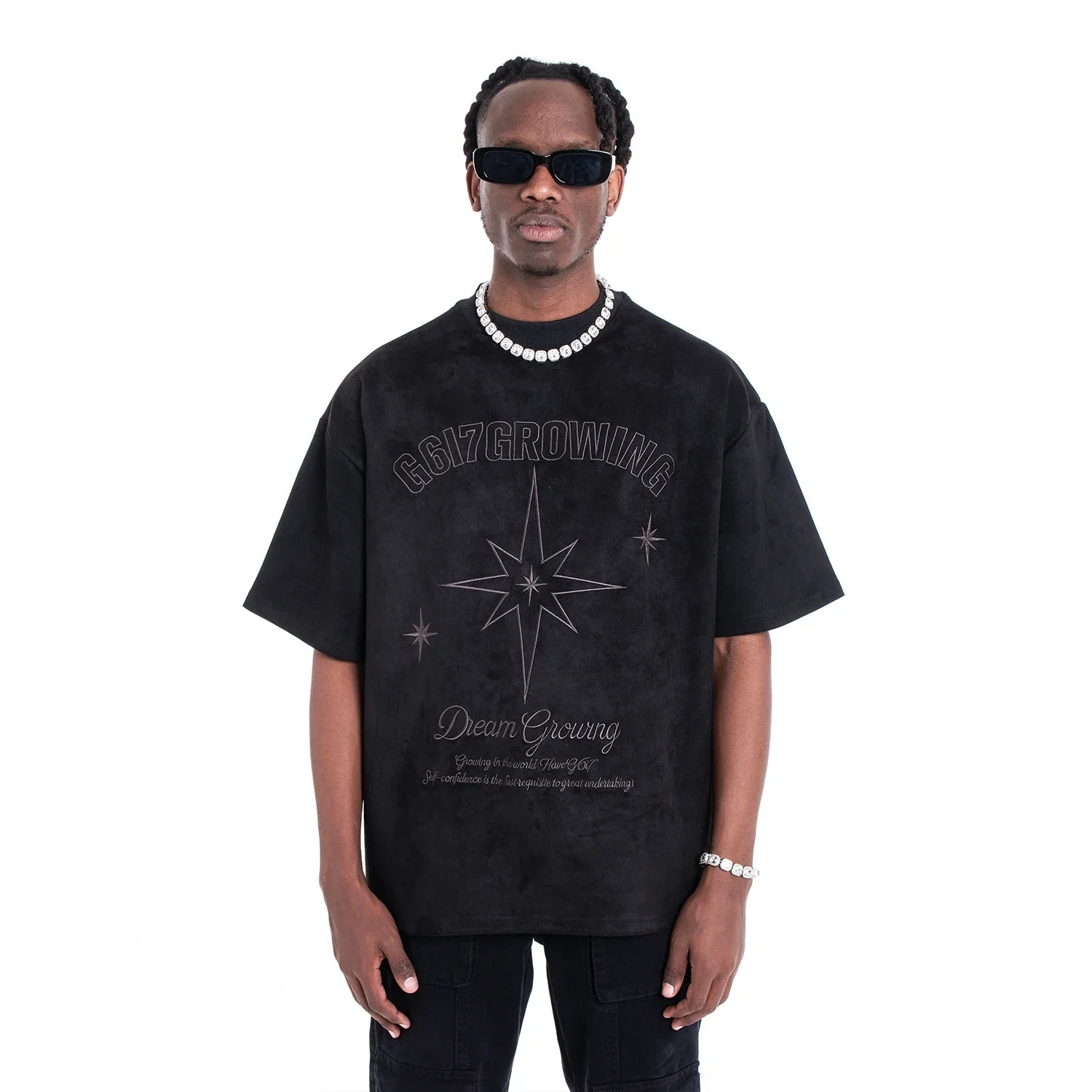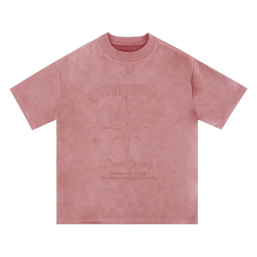 Introducing Vonvex's Y2K Suede Embroidered Oversized T-Shirt. Made from cotton with a broadcloth fabric. it features an O-neck collar and solid pattern. This stylish piece combines comfort and a vintage vibe. perfect for any casual wardrobe.