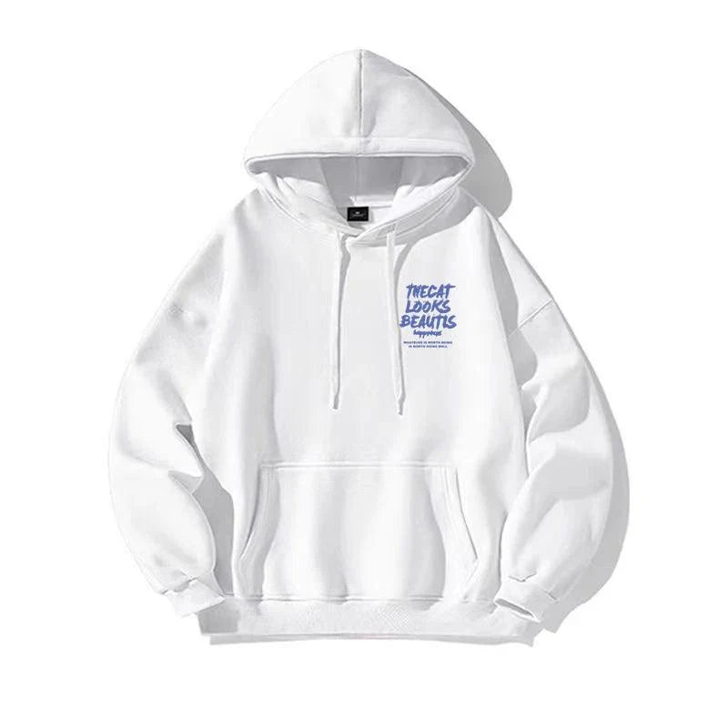 Indulge in style with our Y2K The Cat Looks Beauty Hoodie. Cotton-polyester-spandex blend. standard thickness. hooded collar. featuring letter and figure patterns.