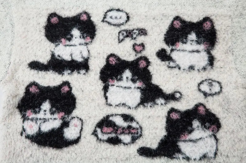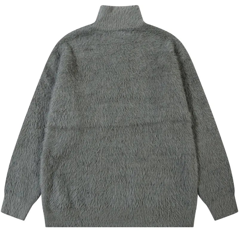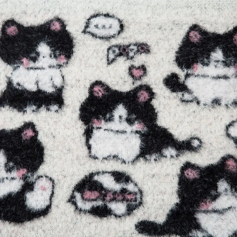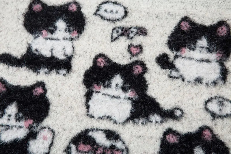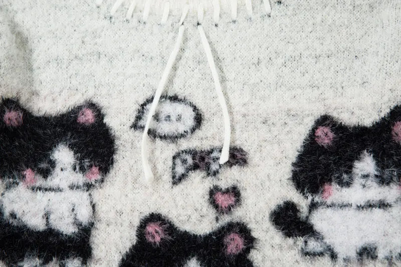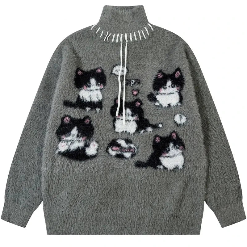 Y2K Turtleneck Cat Picnic Sweater: Playful and cozy. featuring a cute cat graphic and a stylish turtleneck for a charming Y2K-inspired look. Perfect for casual days.