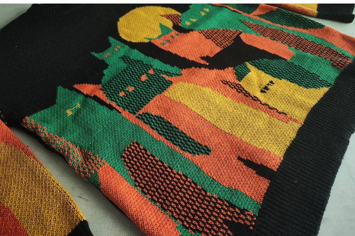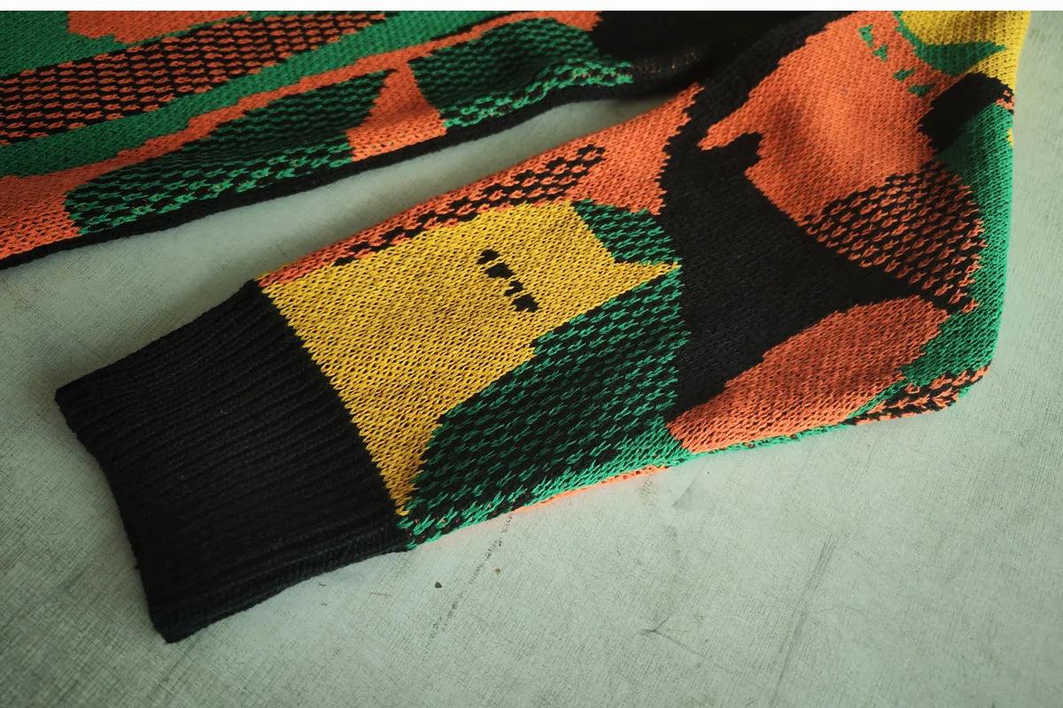 This Y2K Wild Cats Sweater is crafted from polyester and is of a thick-knit construction. It features a vintage-style collar and regular sleeves. with a print pattern.